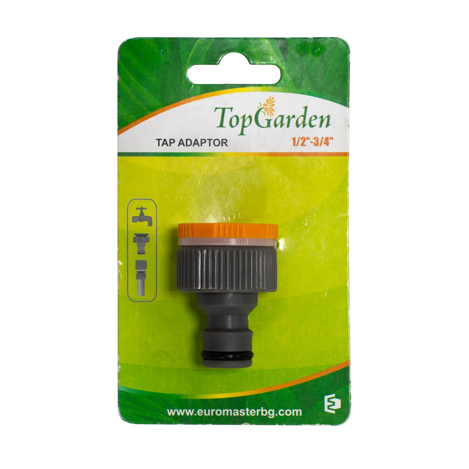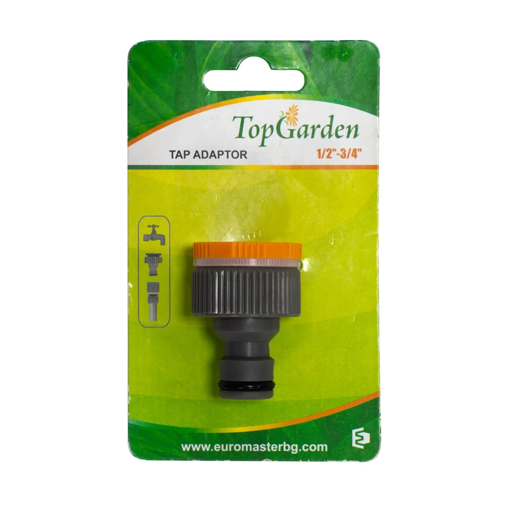 Адаптер за градински маркуч. Продуктът не позволява на водата да изтича при разкачане на пистолета, когато е под налягане, и допринася за удобството по време на употреба.