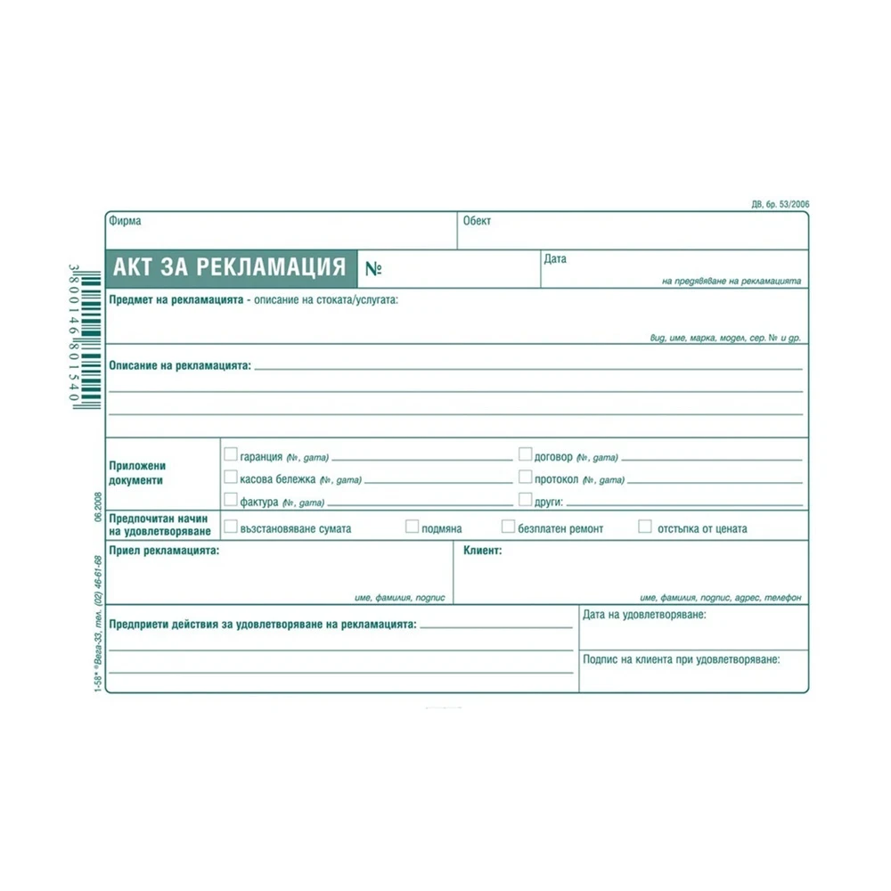 Акт за рекламация, химизиран, 100 листа