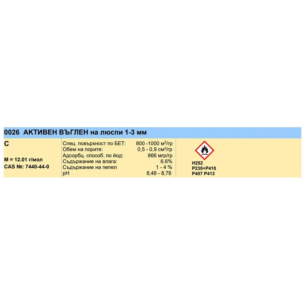 Активен въглен на люспи (C), 1-3 mm.