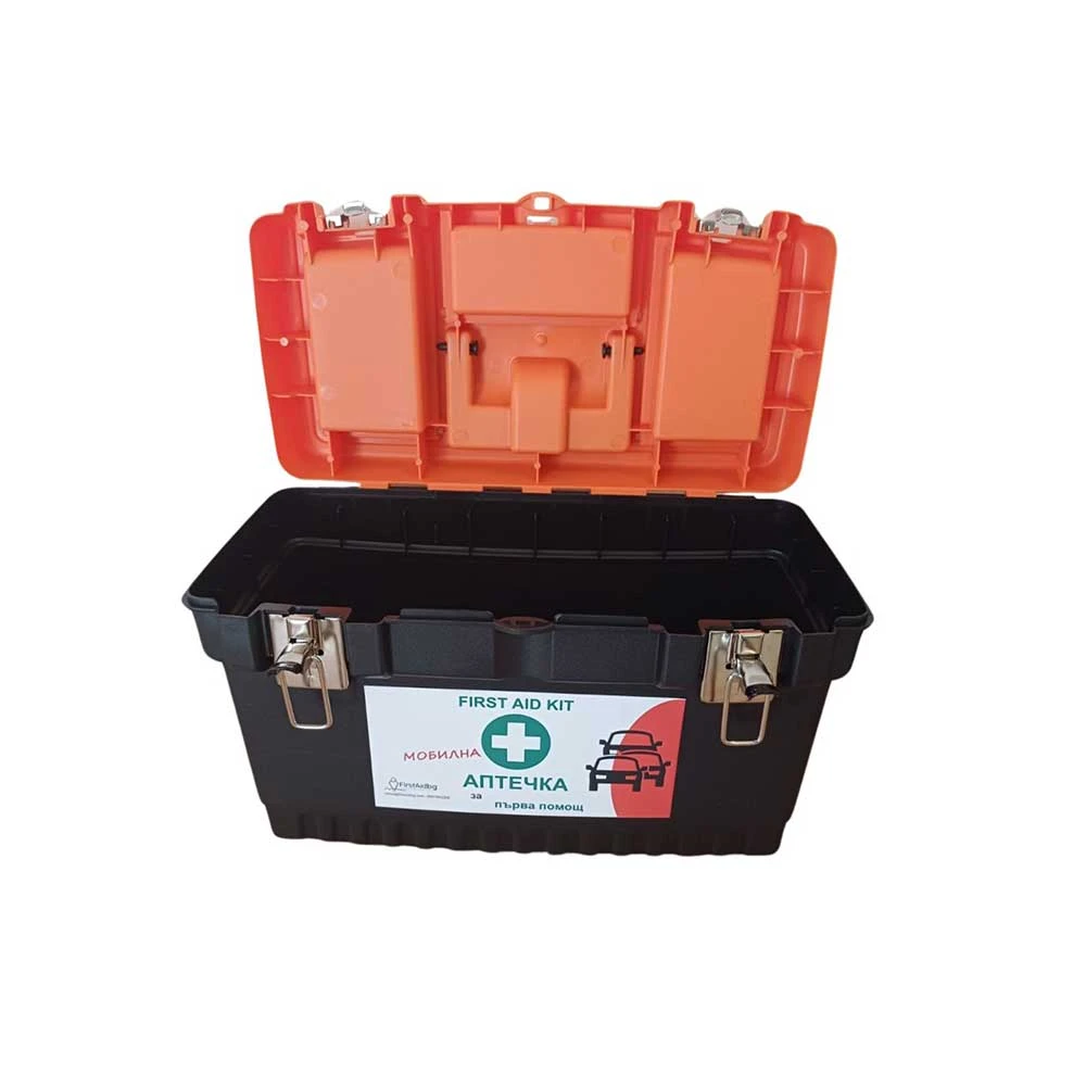 Мобилна аптечка за първа помощ в компактна и удобна ПВЦ чанта, оборудвана и маркирана по съвременните стандарти. Съобразена с Инструкция №1 от 1.02.2008 г. на МЗ за съдържанието на аптечките за МПС. Тази аптечка е подходяща за работни процеси, които включват придвижване на по-големи разстояния, както и транспортиране с автомобил. Освен задължителните по Инструкция №1, съдържа всички съвременни средства – лични предпазни средства (маска за обдишване, ръкавици), спасително одеяло, гел и антибактериална превръзка за изгаряне, ампула за промиване на очи и др.