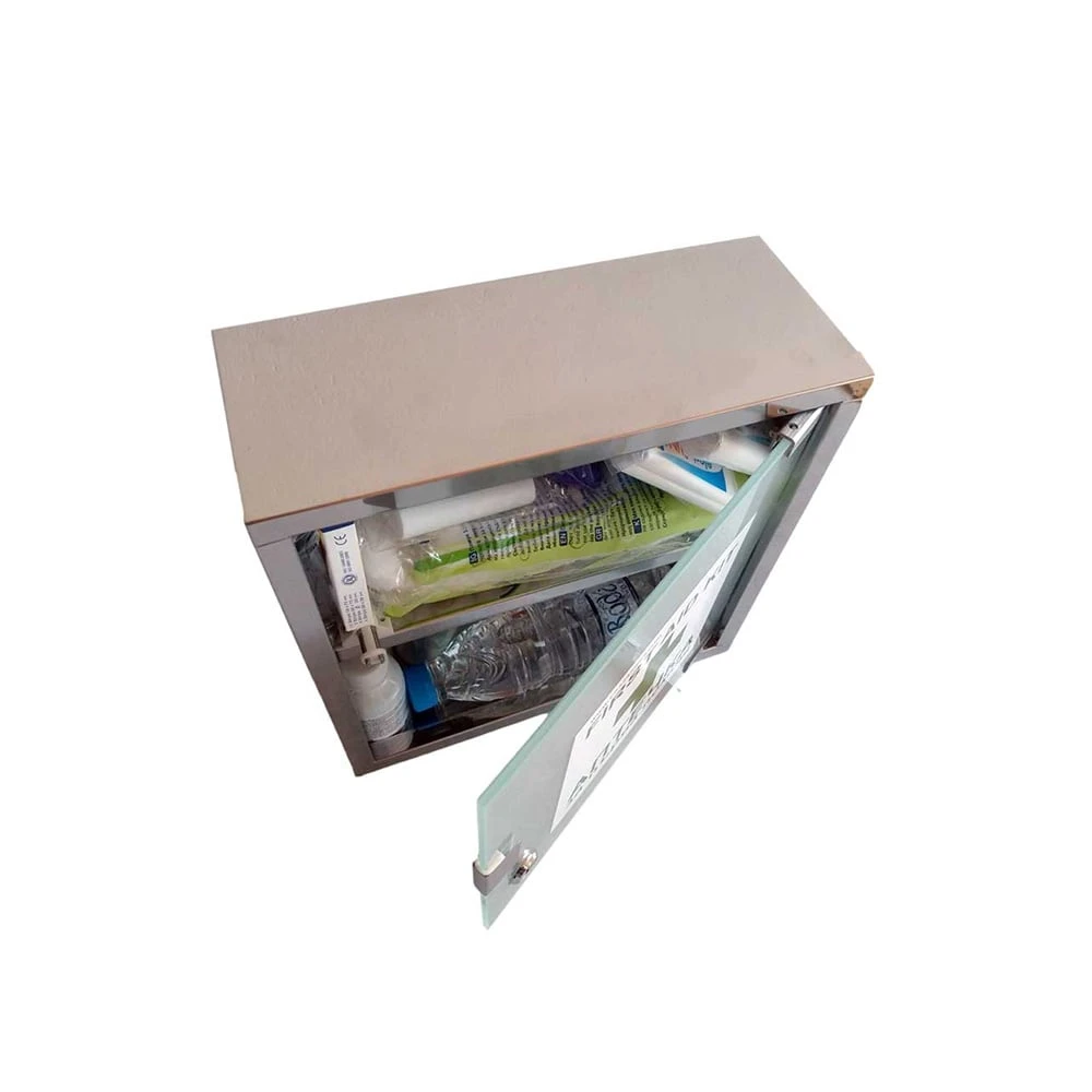 Размери: 30 х 30 х 15 cm. Допълнителни характеристики: съдържа два ключа за заключване и комплект за монтаж на аптечка за стена, свободно място за допълнително оборудване.