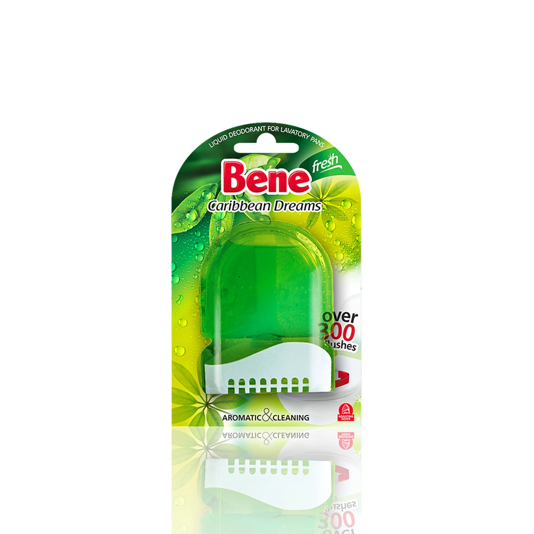 „Бене Фреш“ е течен ароматизатор за тоалетни чинии. Перфектно отстранява замърсяването по фаянса на тоалетната.