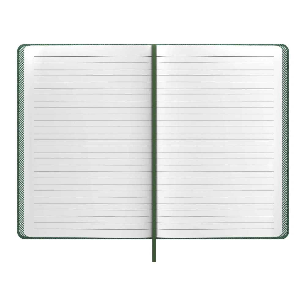 Бележникът е снабден с еластична лента за сигурно затваряне, която предпазва съдържанието при пренасяне, както и с текстилна лента за отбелязване на страница, улесняваща бързия достъп до важна информация.