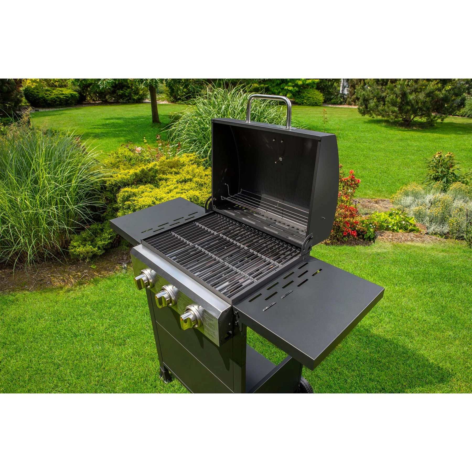 С вграден термометър за следене на температурата, система за електронно запалване и допълнителни странични плотове, моделът е създаден за максимално удобство при готвене и сервиране. А благодарение на здравите колела, скарата лесно се премества до всяко място в градината или двора.