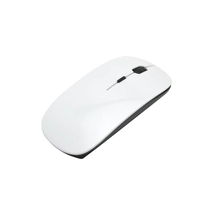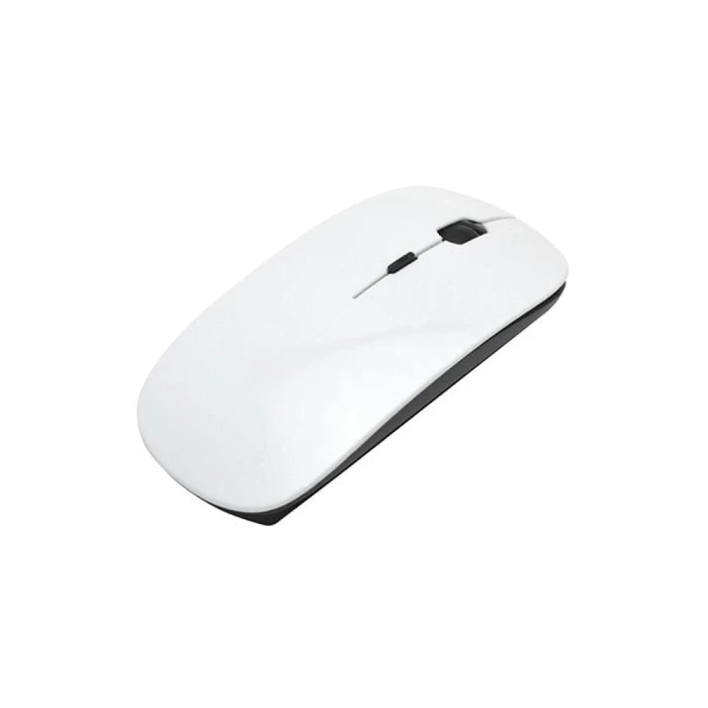 Бяла безжична мишка с възможност за персонализация чрез сублимация, на която може да отпечатате фирмено лого или любимото си изображение.