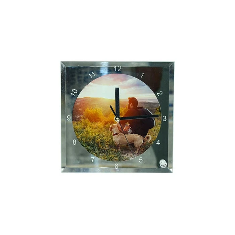 Стъклен часовник с възможност за персонализация чрез сублимация, на който може да отпечатате любимото си изображение.