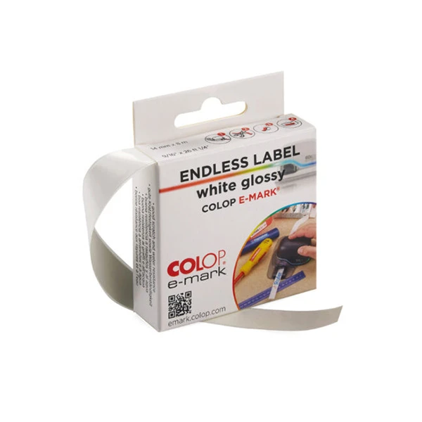 Безконечни етикети Colop E-Mark, гланцирани, широчина 14 mm, дължина 8 m, бели
