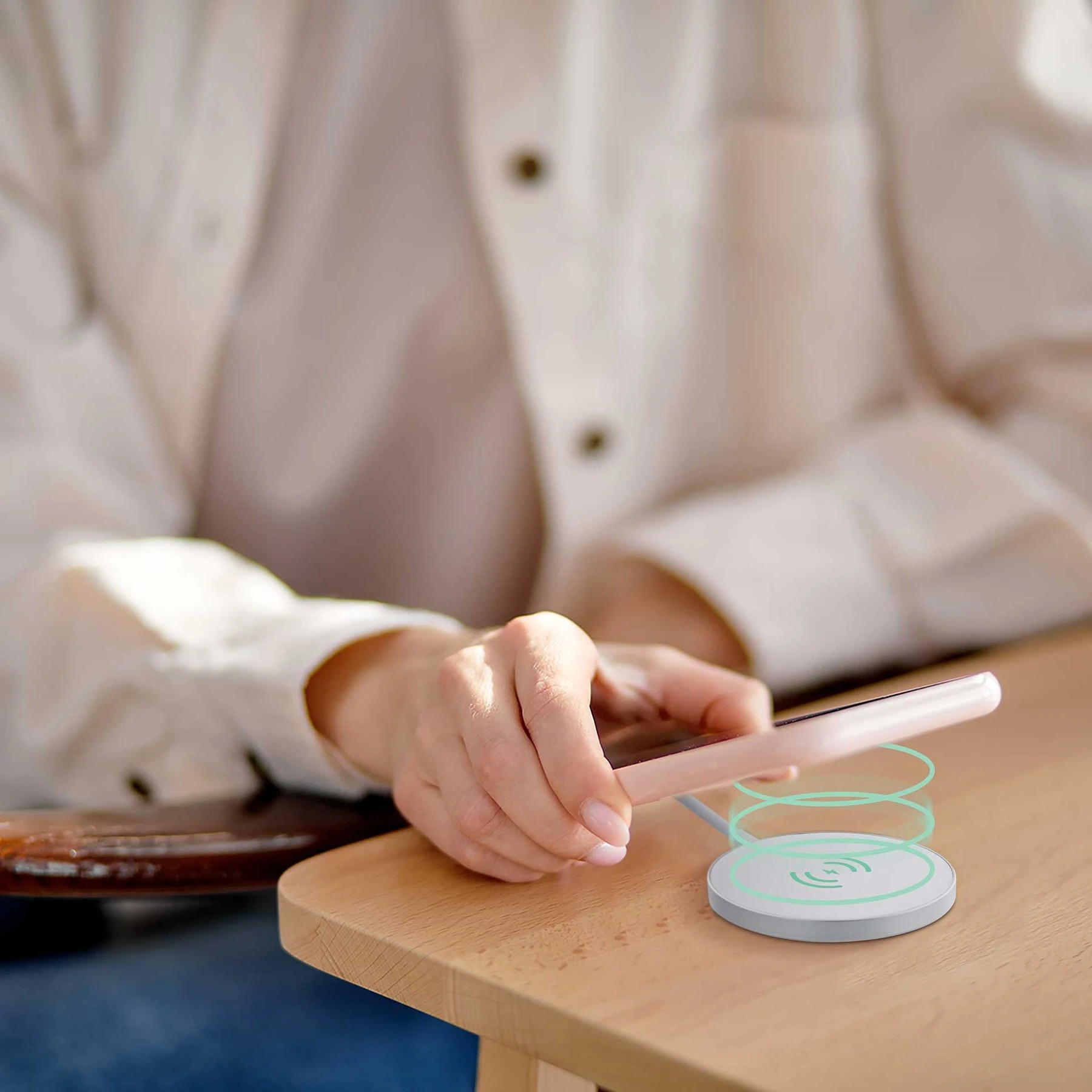 Бързо и лесно ще заредите всяко устройство с технология Qi! Зарядното е лесно за използване – просто трябва да поставите телефона си върху безжичната основа и зареждането започва.
