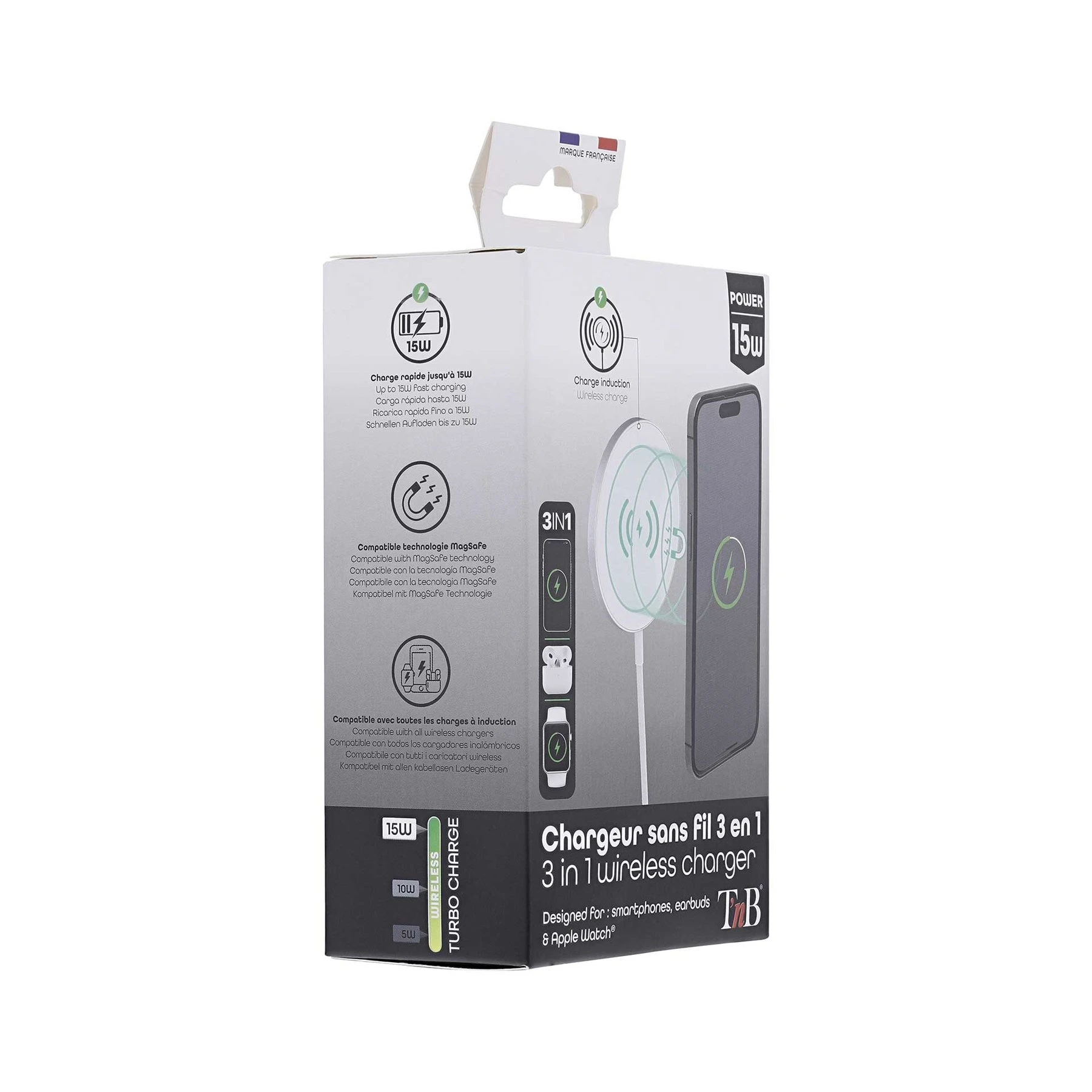 Безжично зарядно за телефон TNB, USB Type-C, 15 W, Micro USB