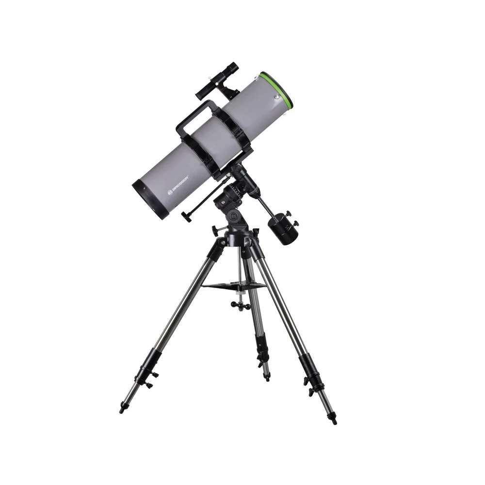 Благодарение на комбинацията от голяма 150 mm бленда и късо фокусно разстояние от 750 mm , можете да се удивите на огромен набор от небесни обекти като големи мъглявини, отворени звездни купове или галактиката Андромеда. Мощният рефлекторен телескоп Newton също е чудесен за наблюдение на нашата собствена слънчева система: с 25-милиметровия окуляр Plossl можете да видите Луната с 30-кратно увеличение. Първокласното параболично основно огледало произвежда значително по-резки изображения и по-добри контрасти от подобен телескоп с обикновено сферично огледало. В допълнение, телескопът има и голямо 55 mm вторично огледало , което осветява зрителното поле перфектно, за да създаде ярко изображение.