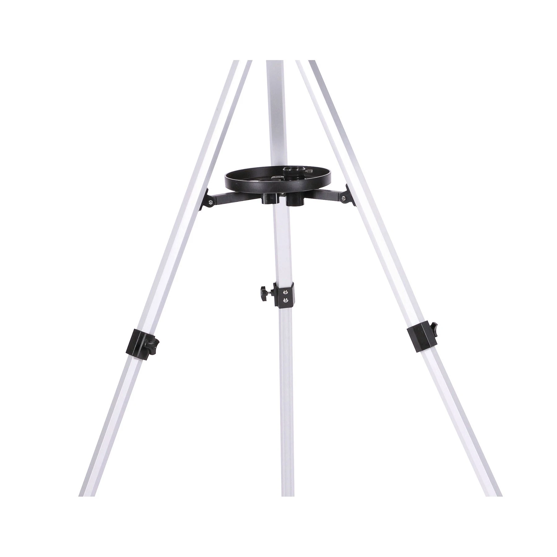 Алуминиевият статив с регулируема височина и азимуталната стойка осигуряват стабилна опора и лесна небесна навигация. Азимуталната стойка улеснява работата на начинаещите учени, тъй като е много лесна за използване: точно като типичен статив за снимки, завъртате телескопа с ръка наляво и надясно, нагоре и надолу. По този начин любимите ви небесни обекти бързо се появяват в полезрението ви. Удобно: за да сте сигурни, че вашите астрономически принадлежности са винаги под ръка, между краката на статива има плоча за съхранение.