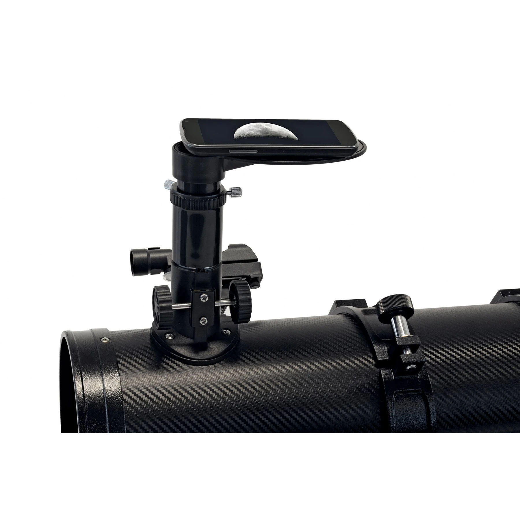 Новото хоби води до нови впечатления – и естествено искате да ги заснемете и споделите. Следователно можете лесно да използвате мобилния си телефон за първите си стъпки в астрофотографията с адаптера за смартфон. Перфектен за страхотни моментни снимки на Луната или Слънцето.