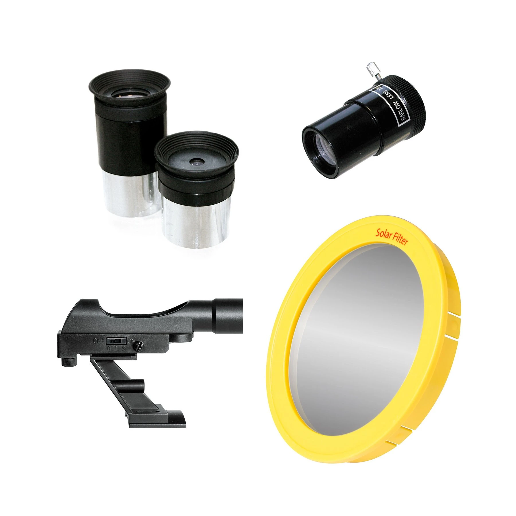 Два окуляра и леща Barlow с гнезда 31.7 mm (1.25 инча) за различни увеличения.