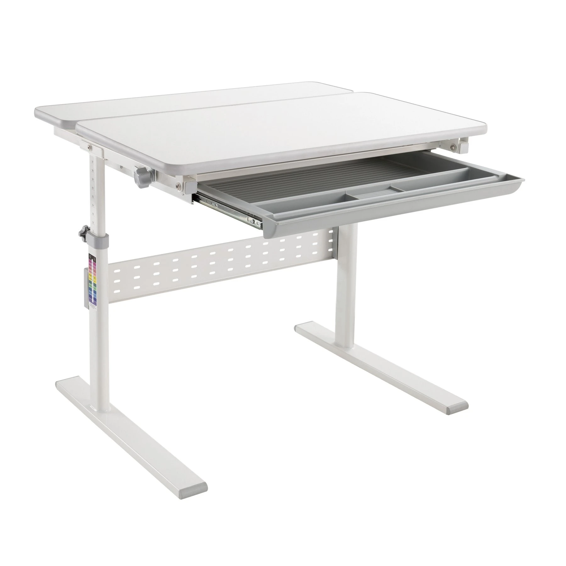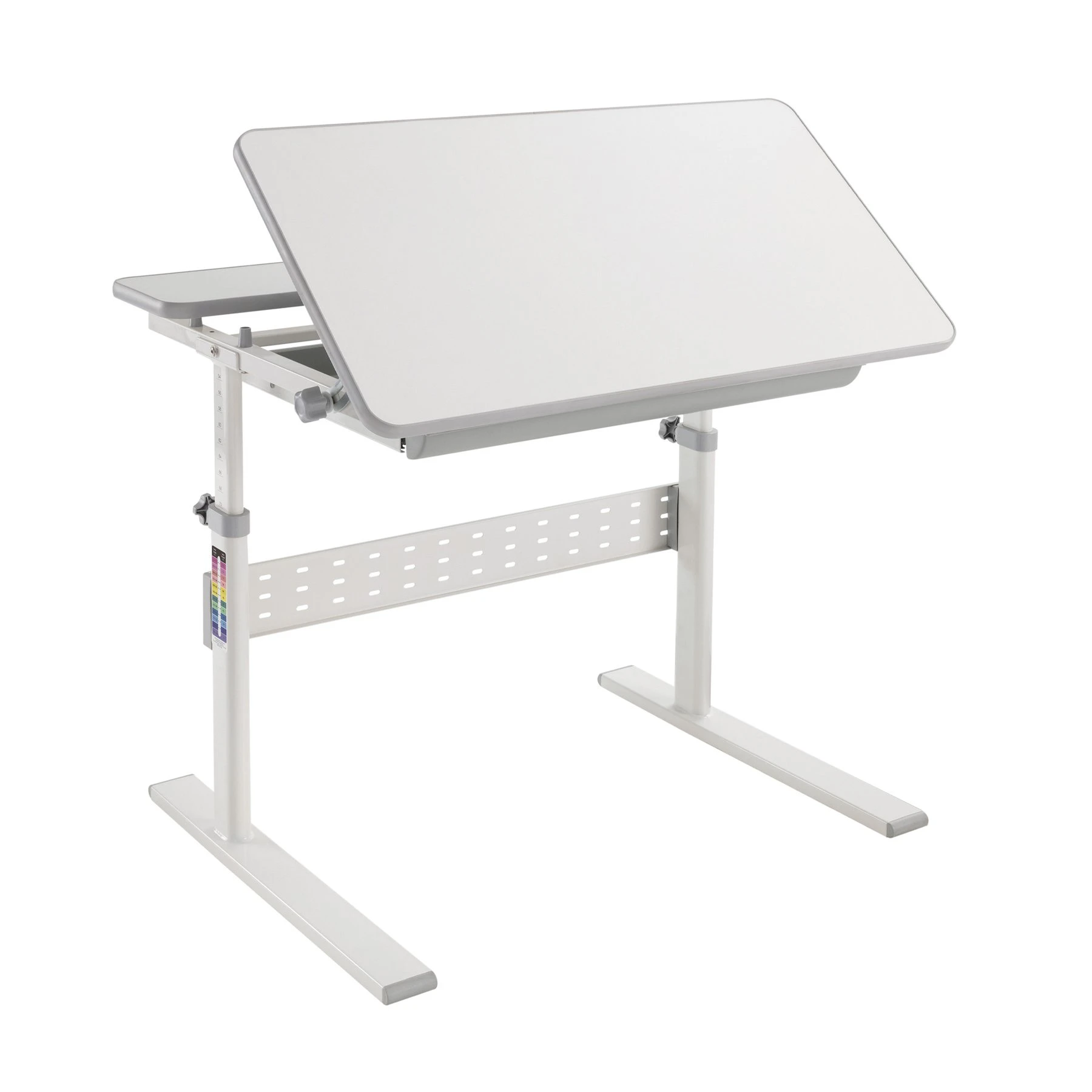 Регулируемата височина и накланящият се работен плот позволяват на детето да подобри стойката си, докато пише или рисува.