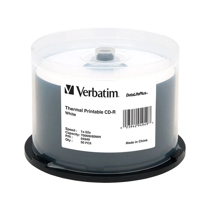 CD-R Verbatim, 700 MB, 52x, с бяло покритие за мастиленоструен печат, 50 броя в шпиндел