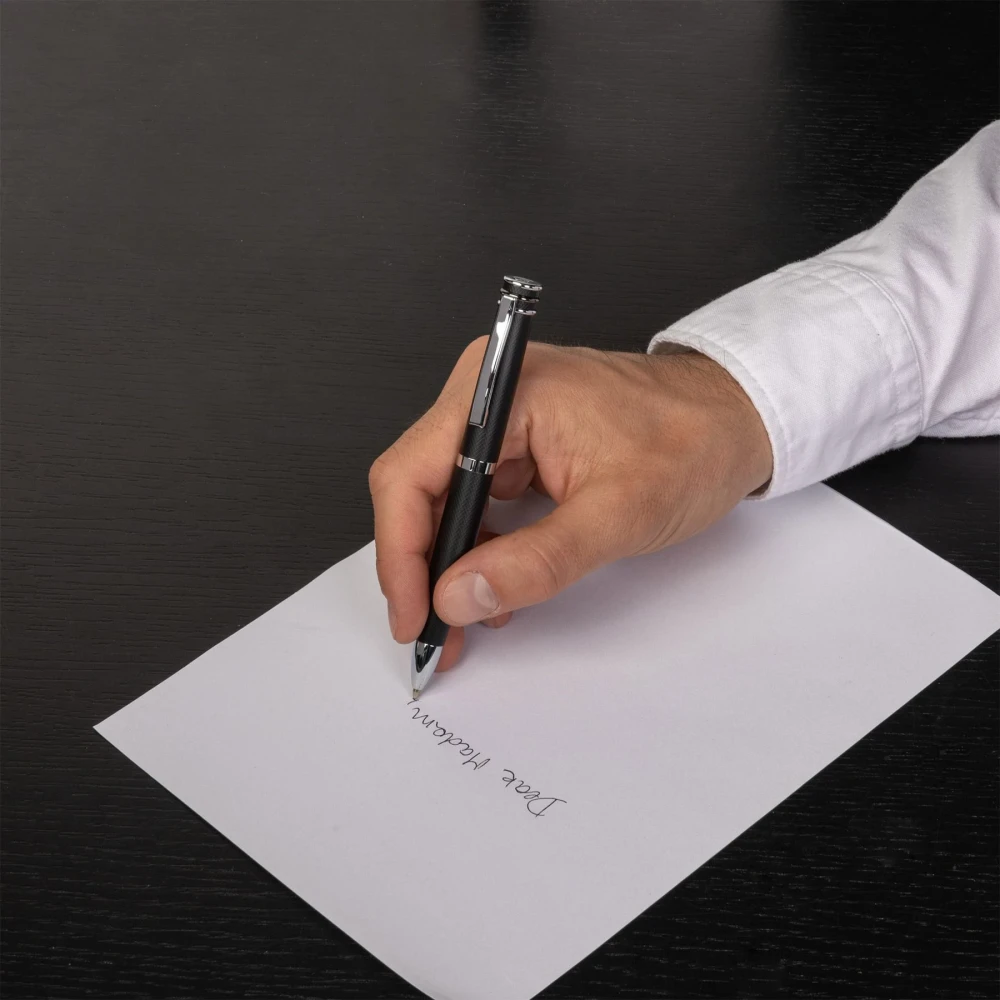 Химикалката Austin е изградена върху един от най-емблематичните силуети на Cerruti. Тук виждаме диамантено изрязана гравирана повърхност, украсена с красиво обработени метални елементи.