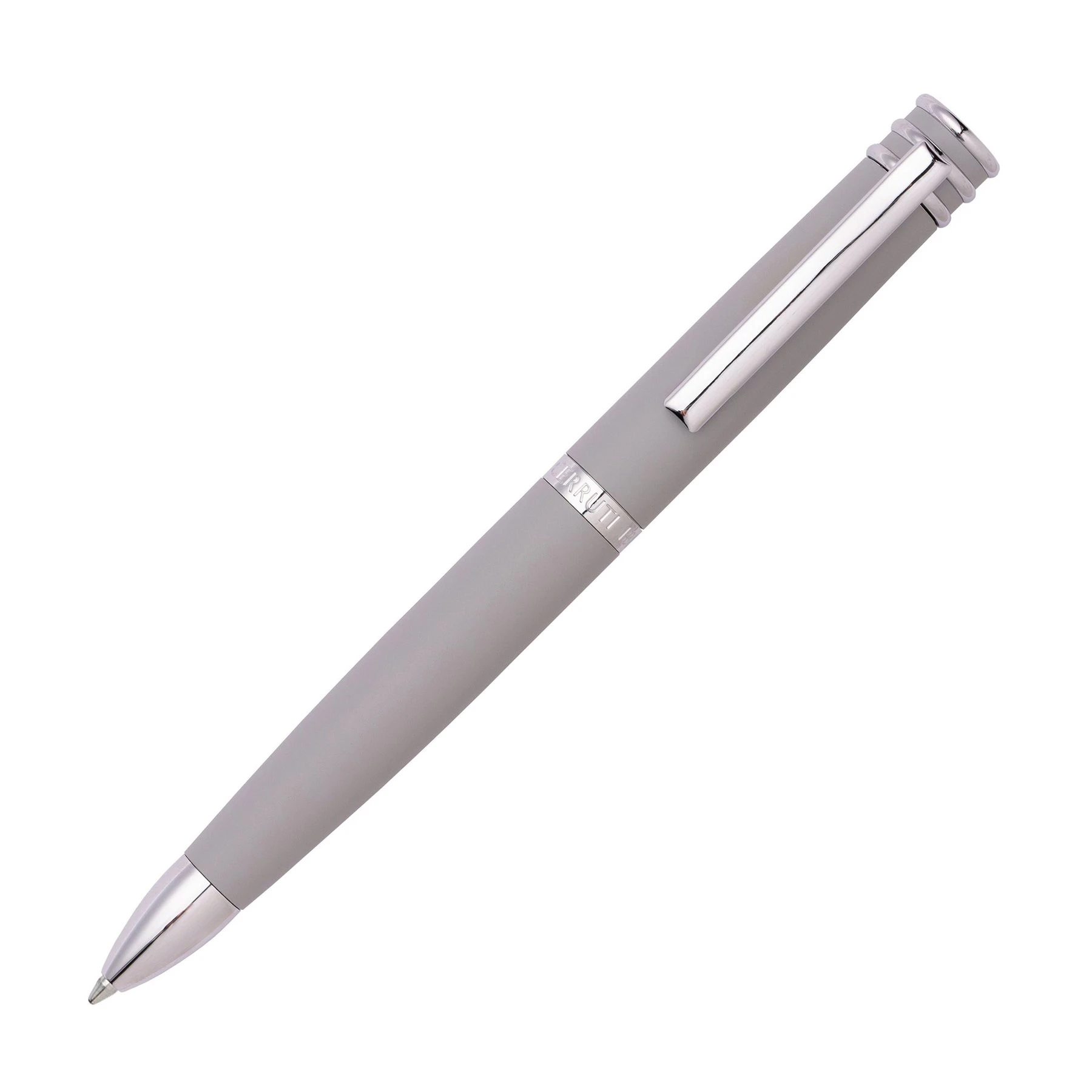 Химикалката Austin е изградена върху един от най-емблематичните силуети на Cerruti. Тук виждаме корпус с матова повърхност, украсен с красиво покрити метални елементи. Тази сива и хромирана версия изглежда свежа и модерна.
