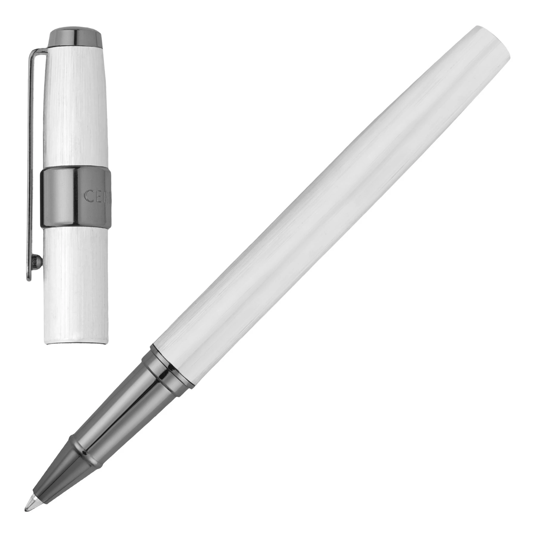 Серията пишещи средства Block Brushed се отличава с 3D пръстен, гравиран с логото на марката Cerruti, разположен на капачката.