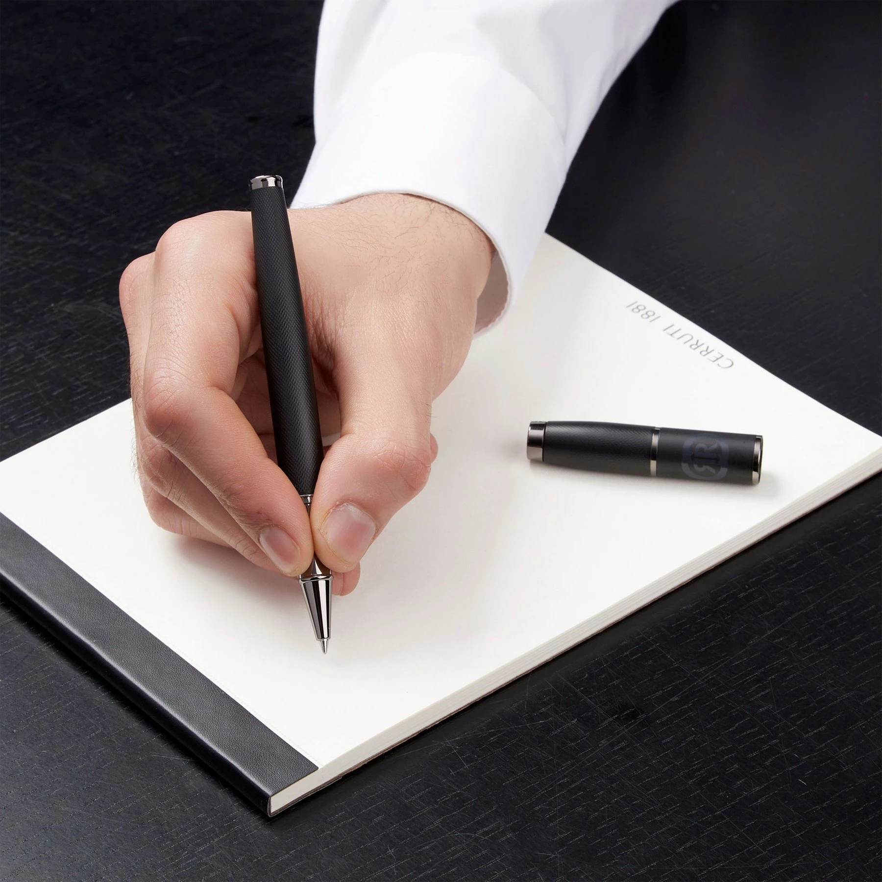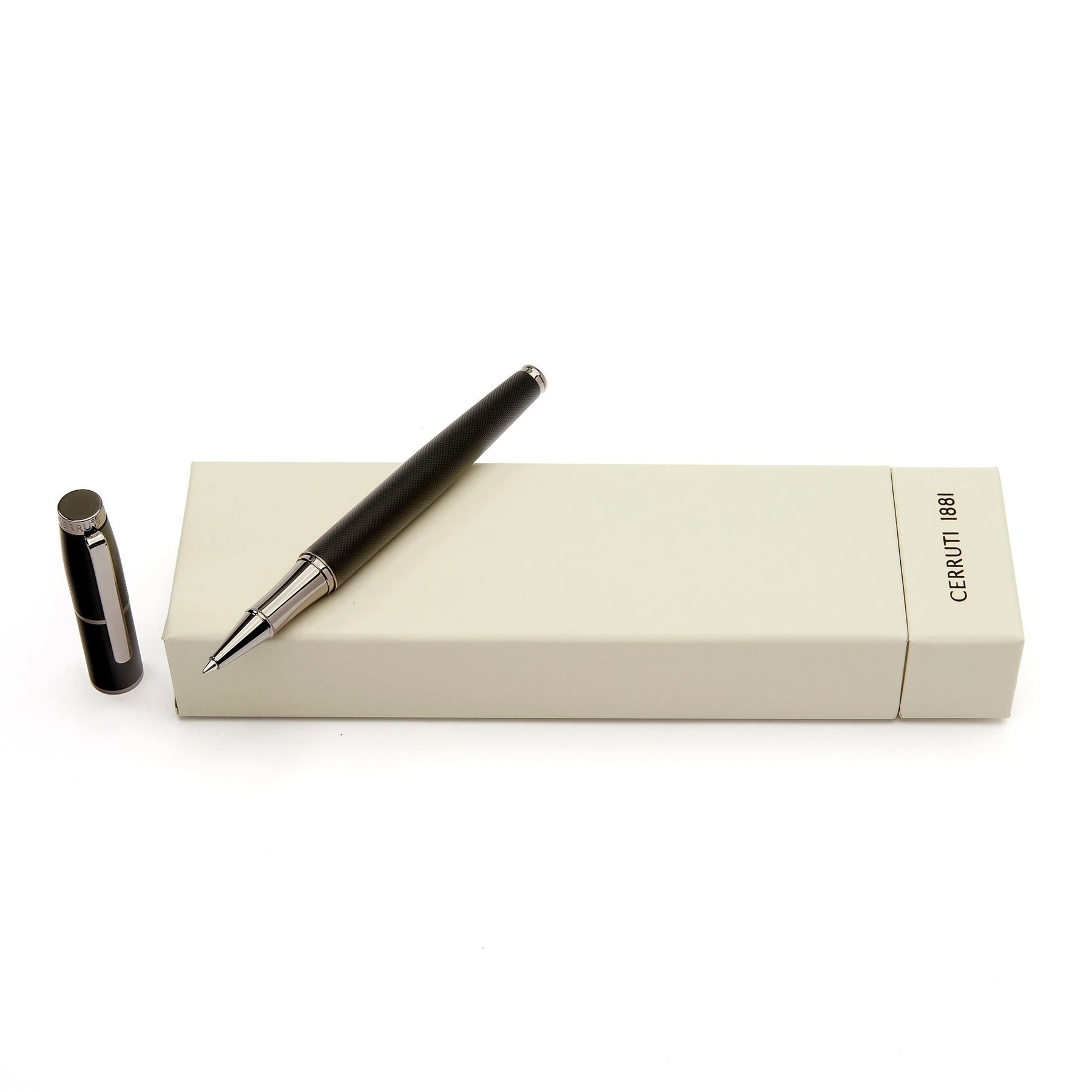 Класическият ролер Cerruti 1881 Brick получава нова елегантна премяна. Неговата диамантено гравирана повърхност добавя допълнително усещане на лукс, допълнено от красиви бронзови елементи. Логото на марката е фино отпечатано в тъмносив цвят, който се съчетава напълно в цялостната естетика. Това е изненадващо модерно, но семпло средство за писане.