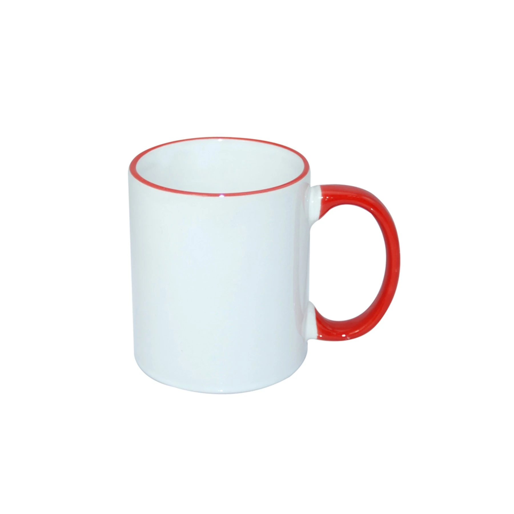 Чаша, керамична, бяла, с червена дръжка