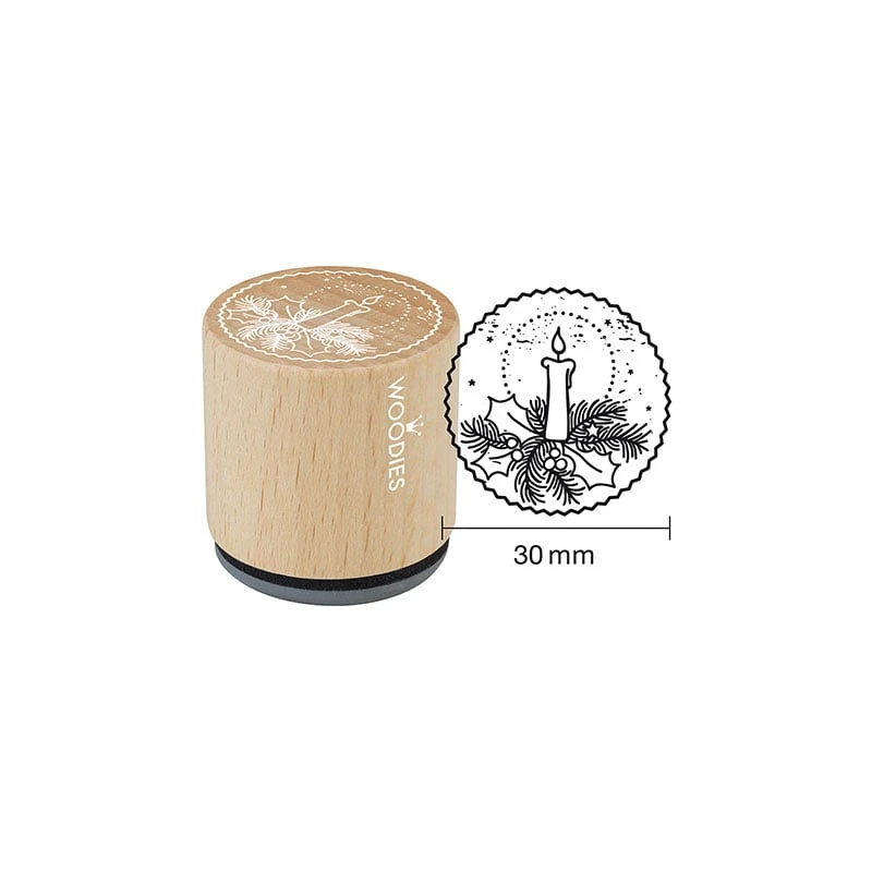 Комплектът се състои от: - 25 дървени печата с различни коледни мотиви; - 5 тампона в специални алуминиеви кутийки.