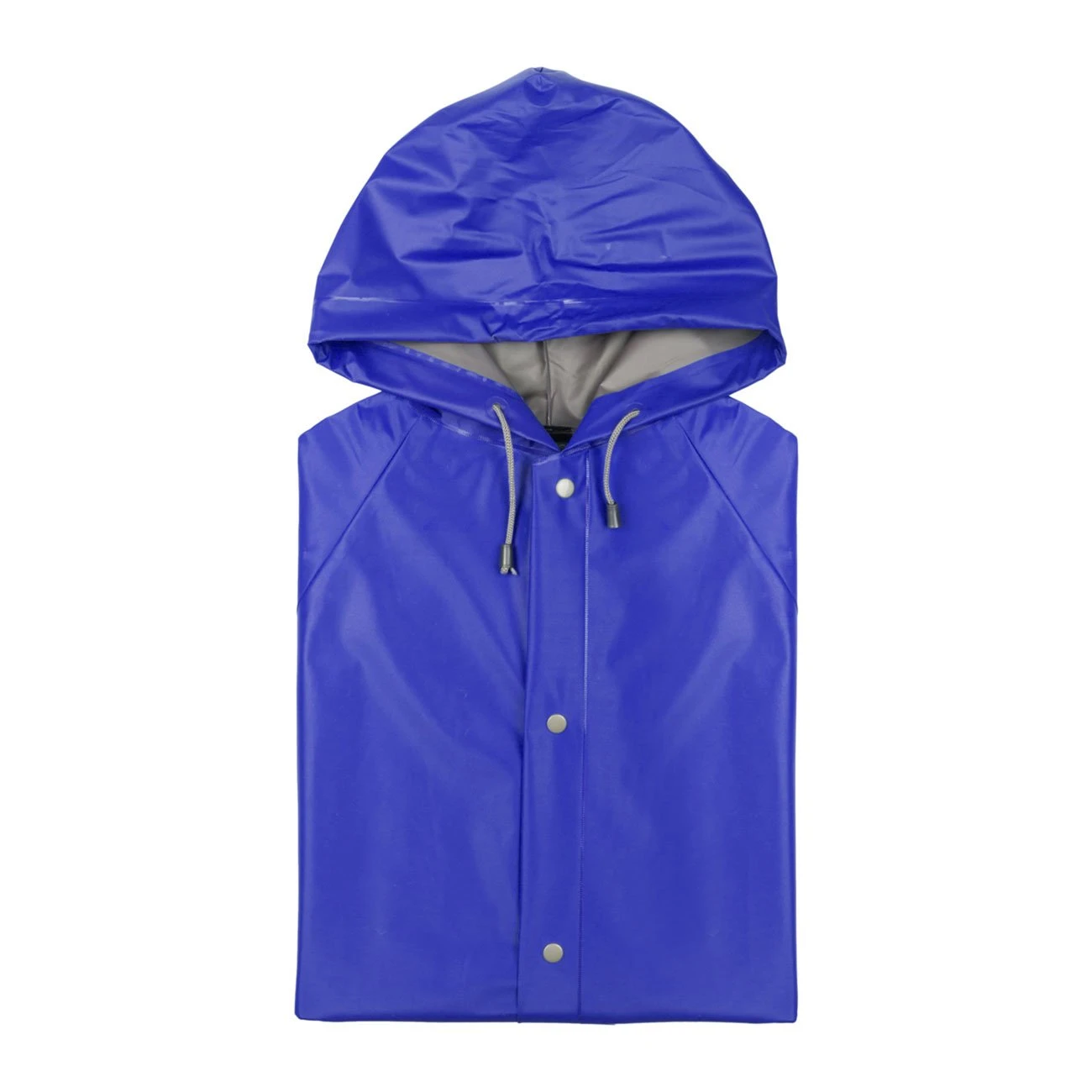 Дъждобран с качулка, изработен от устойчиво PVC, с термозапечатано покритие.