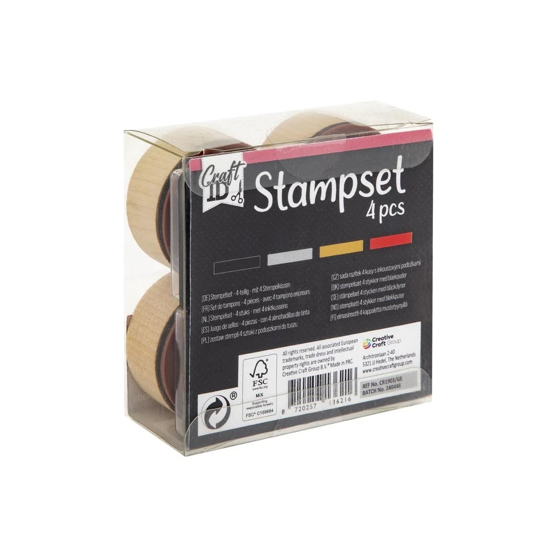 Комплектът съдържа и 4 цветни тампона за удобно използване. Дървената дръжка осигурява стабилност и лесно отпечатване, а висококачествените гумени печати гарантират ясни и детайлни отпечатъци.