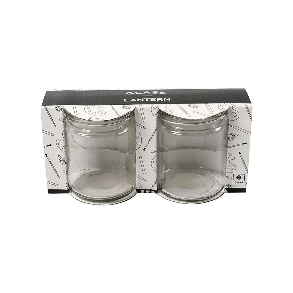 Creativ Company Фенер, цилиндричен, стъклен, 10 х 7.6 cm, 2 броя