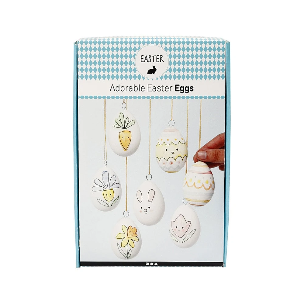 Комплект от различни креативни материали за декорация на 7 великденски яйца.