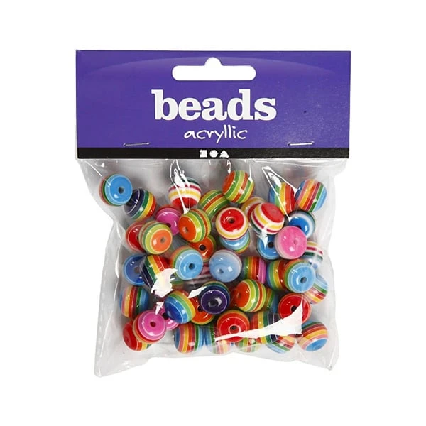Микс от 50 броя пластмасови кръгли мъниста на райета.