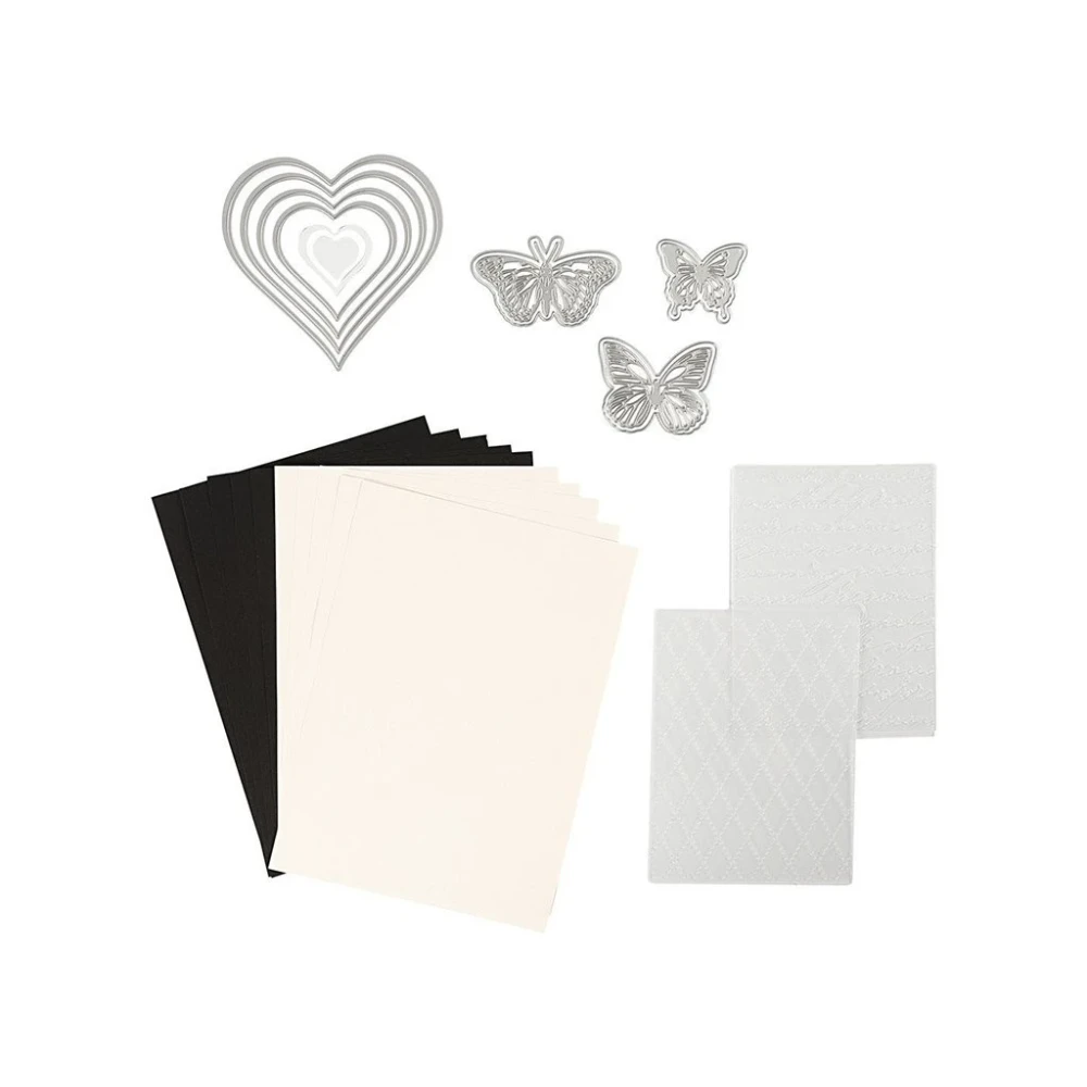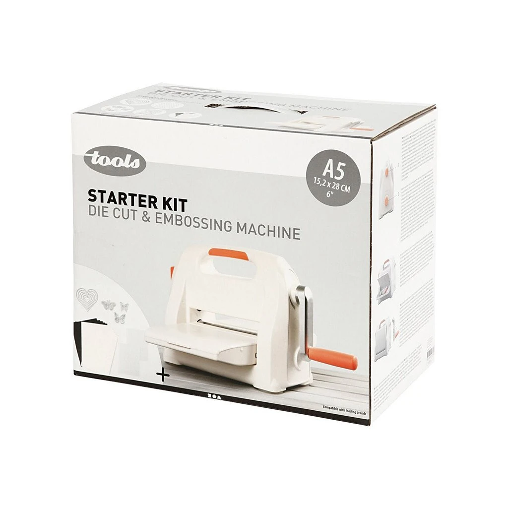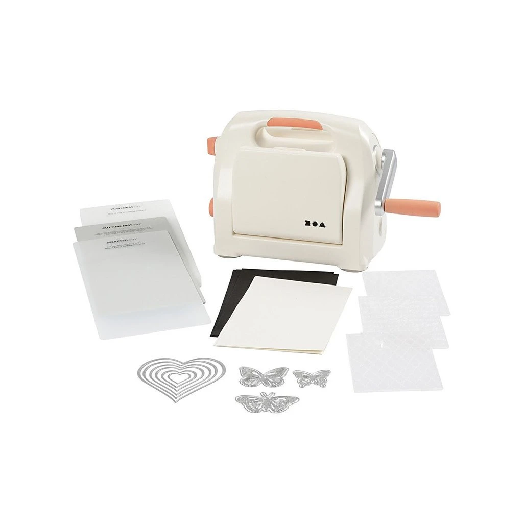 Съдържание: 1 машина за щамповане, 1 акрилен лист, 1 режеща плоча, шаблони, шаблони за щамповане и 10 листа.