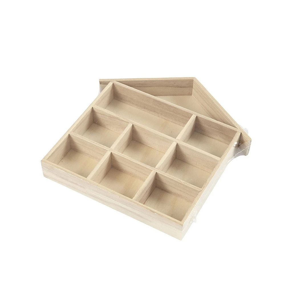 Къща с отделения за съхранение, изработена от дърво.
