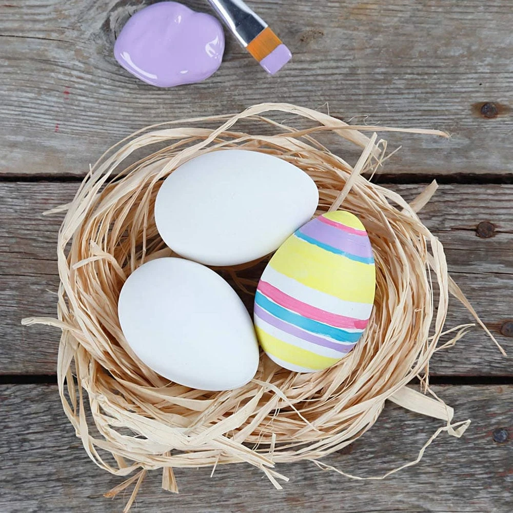 Пластмасови яйца за декорация с гладка повърхност и отвор в горната част.