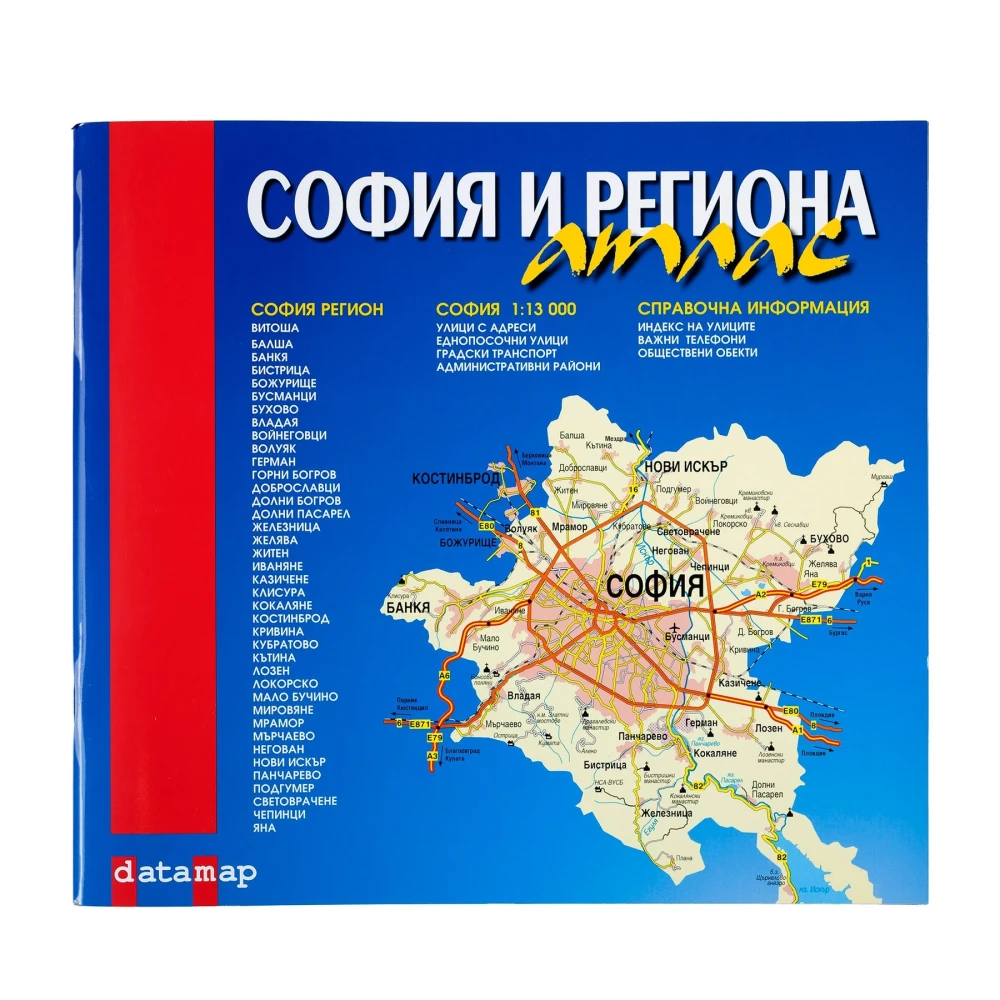Актуализирана карта на София: еднопосочни улици, улична номерация, градски транспорт, обществени обекти, хотели, болници, медицински центрове, метростанции, бензиностанции, газостанции и метанстанции, търговски центрове и базари, паркинги, басейни, спортни зали, индекс на комплекси, квартали и улици, полезна информация.