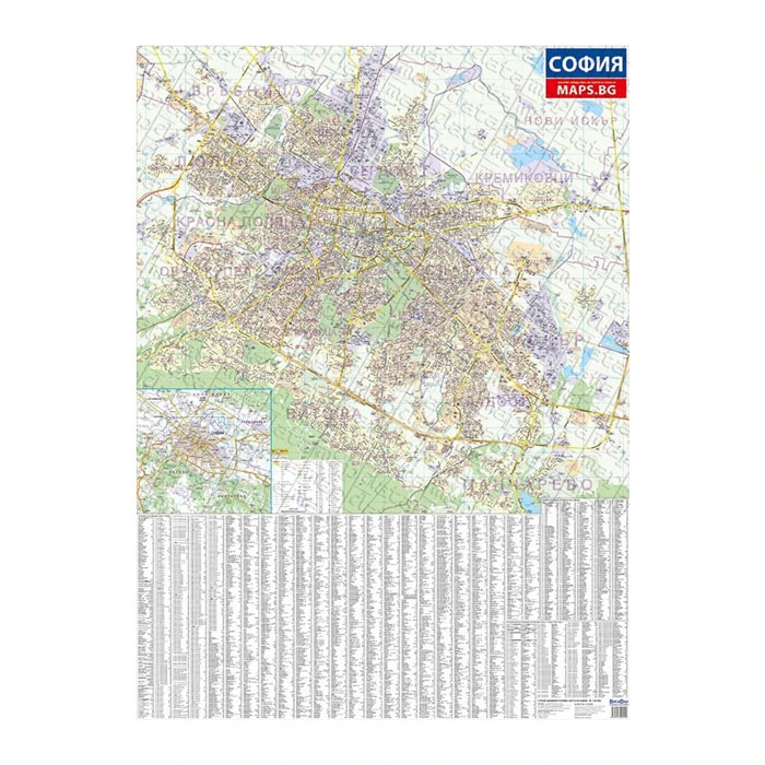 DataMap Стенна карта на София, 100 x 140 cm, ламинирана, мащаб 1:20 000