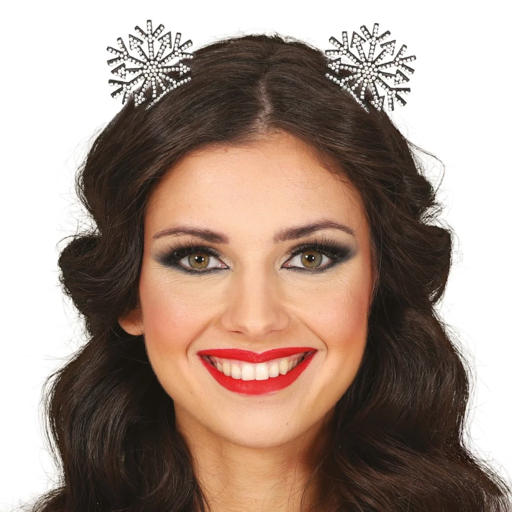 Елегантна диадема за коса с декоративни елементи във формата на снежинки, които придават изискан и празничен акцент на всяка визия.