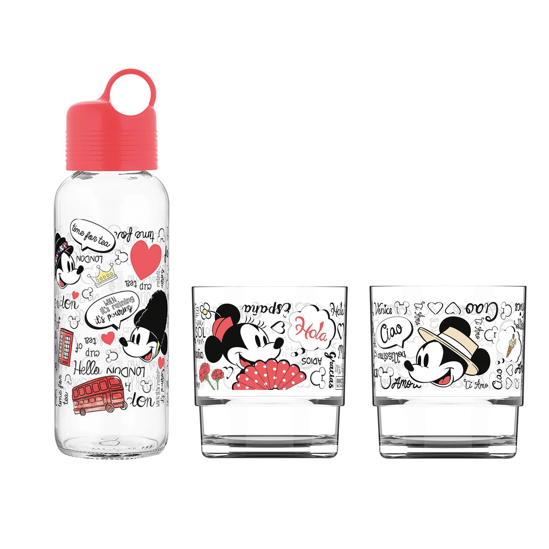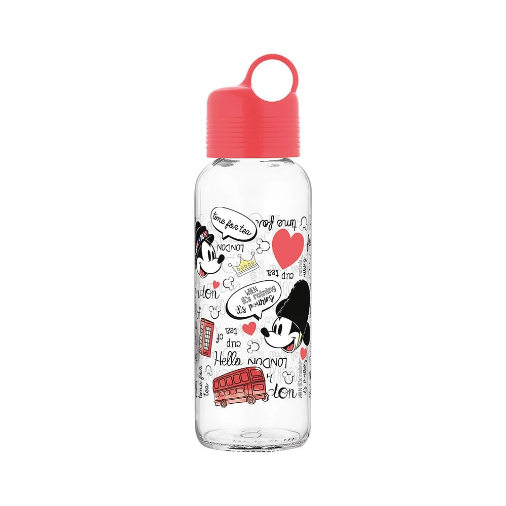 Disney Бутилка за пътуване, в комплект с 2 стъклени чаши, червена