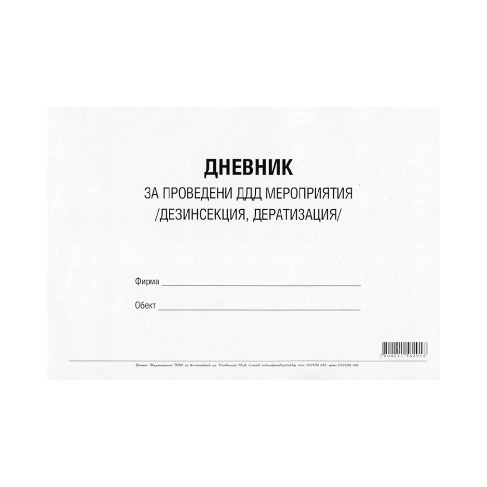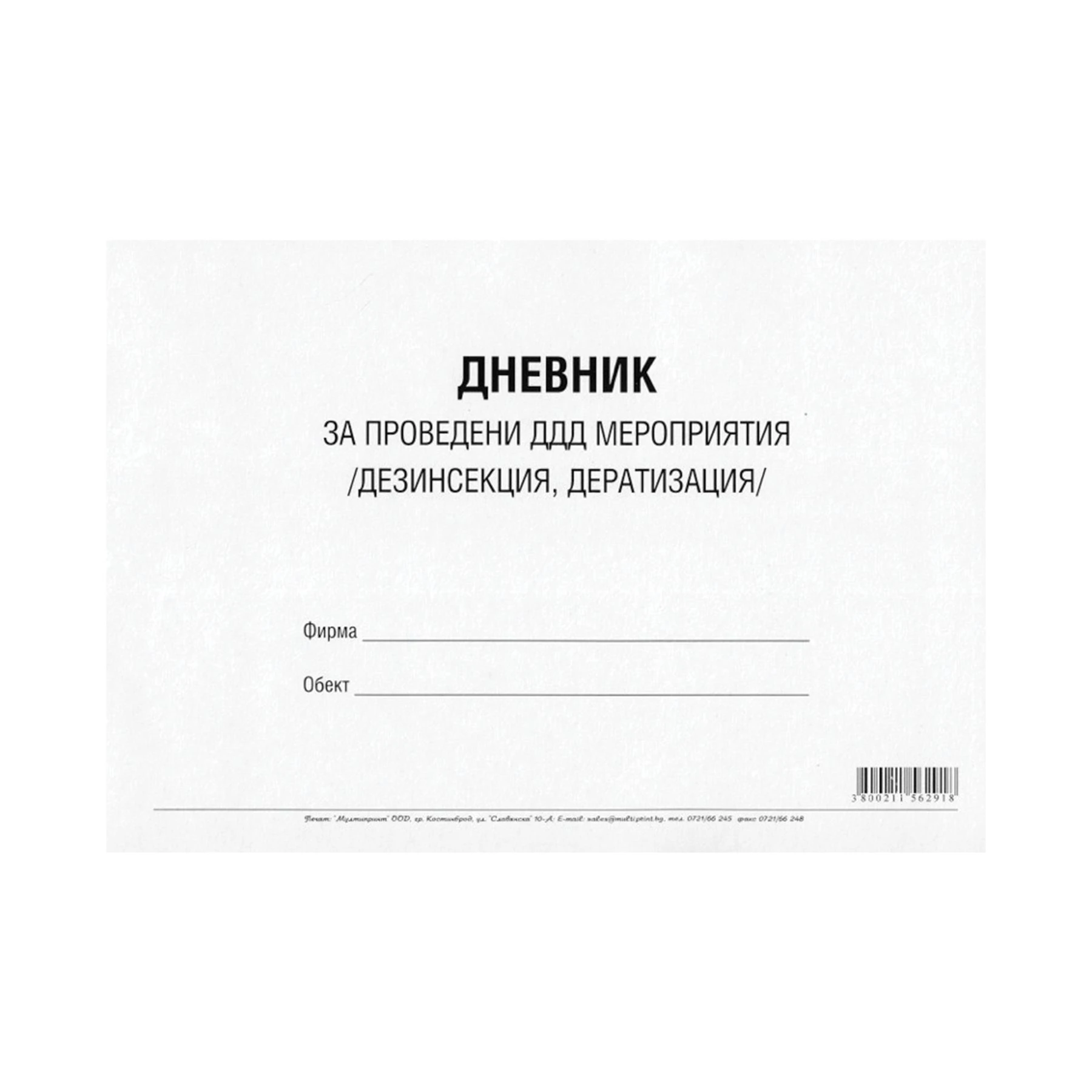 Дневник за проведени ДДД мероприятия (дезинфекция, дезинсекция и дератизация), 50 листа