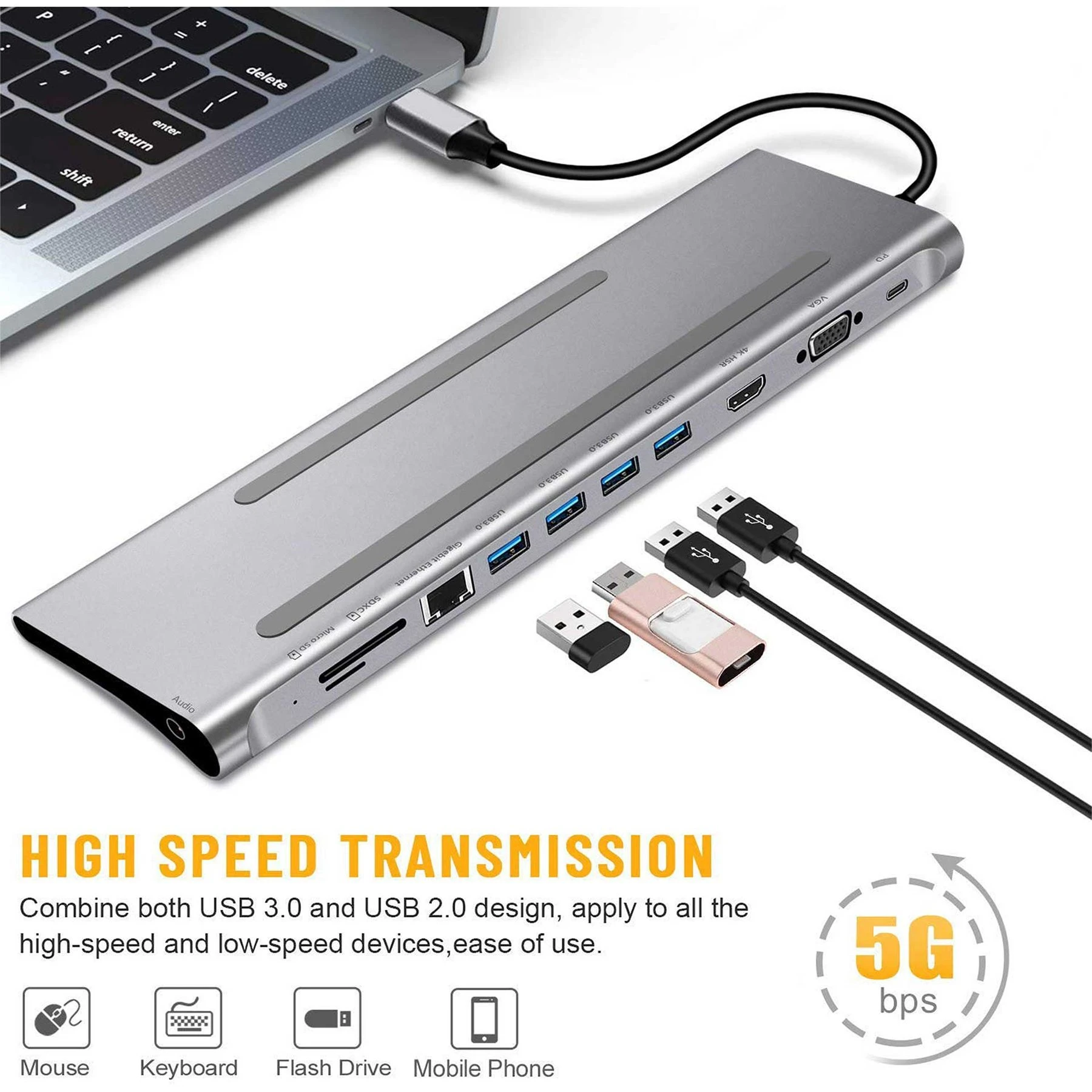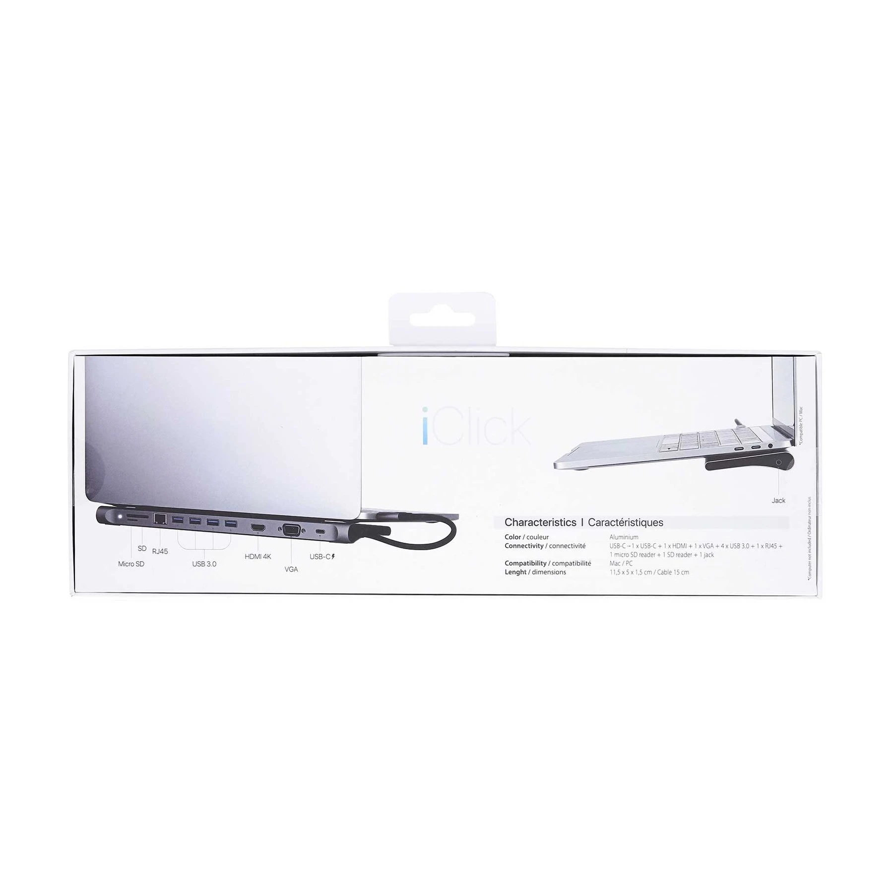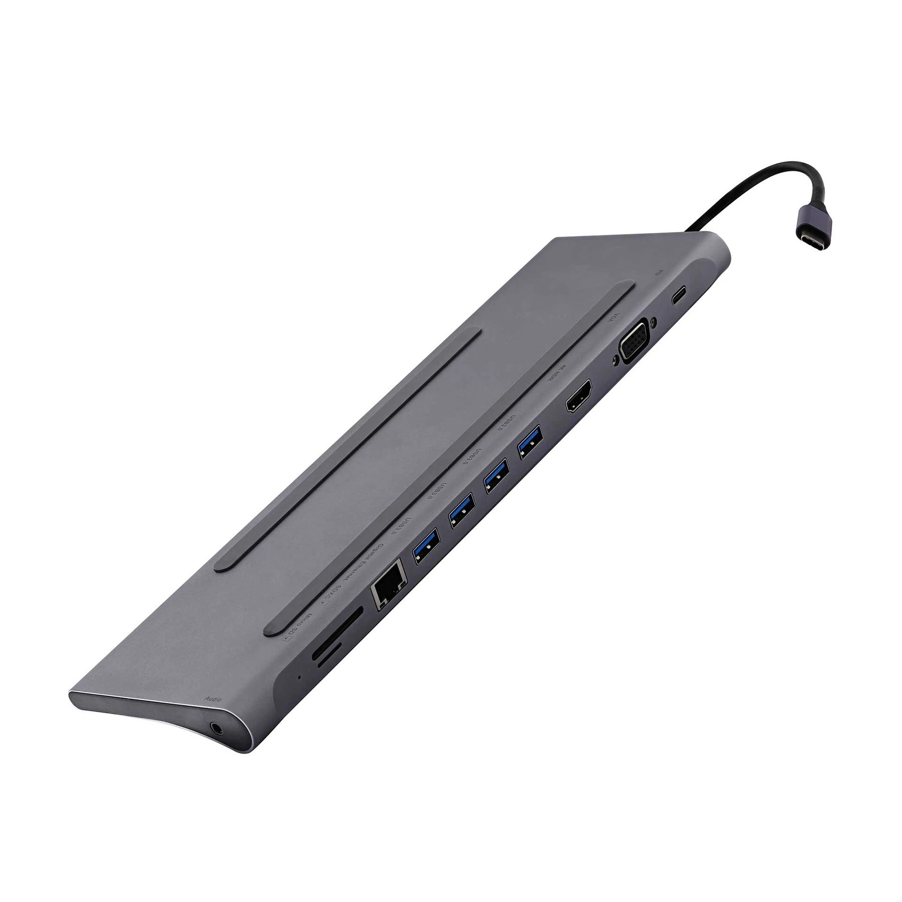 С този USB-C хъб лесно свързвате всички устройства, съвместими с USB-A, към устройство, HDMI кабел, USB-C зарядно устройство, SD и micro SD карта, мрежова и VGA връзка, както и жак.