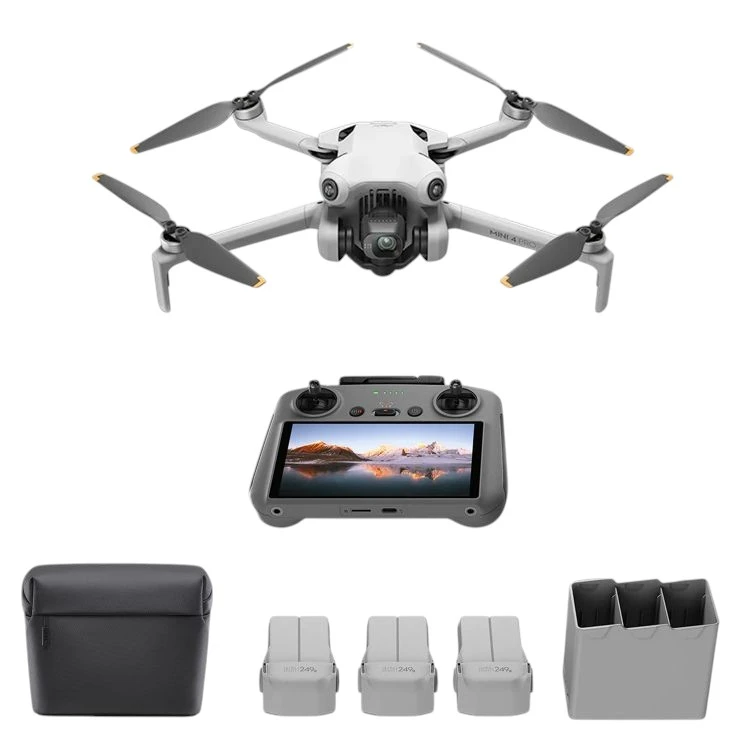 Съдържание на комплекта: - Дрон DJI Mini 4 x 1; - Дистанционно управление RC2 x 1; - Интелигентна батерия x 3; - Чантичка за пренос и съхранение х1 - Хъб за зареждане на батерии х1 - Чифт пропелери x 6; - Кабел Type-C x 1; - Предпазител за гимбал x 1; - Чифт джойстици x 1.