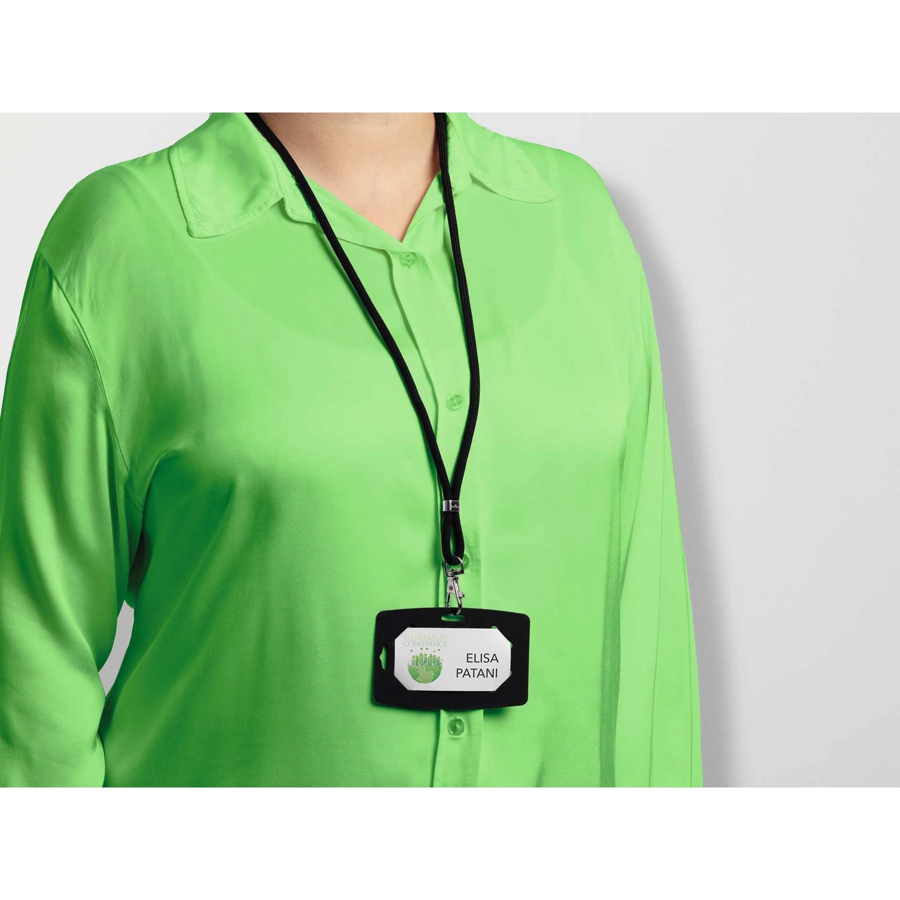 Текстилна лента за бадж със сигурно закопчаване, което се отваря при твърде силно издърпване.