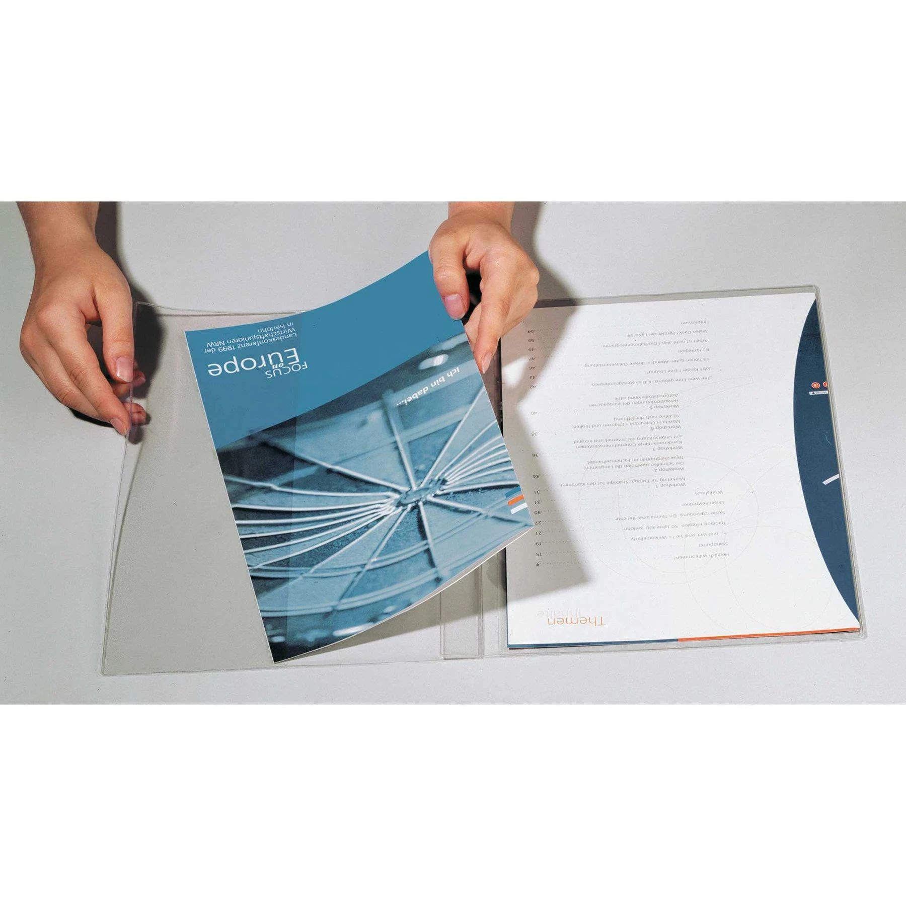 Папка за презентации с кристално ясна видимост на документите.