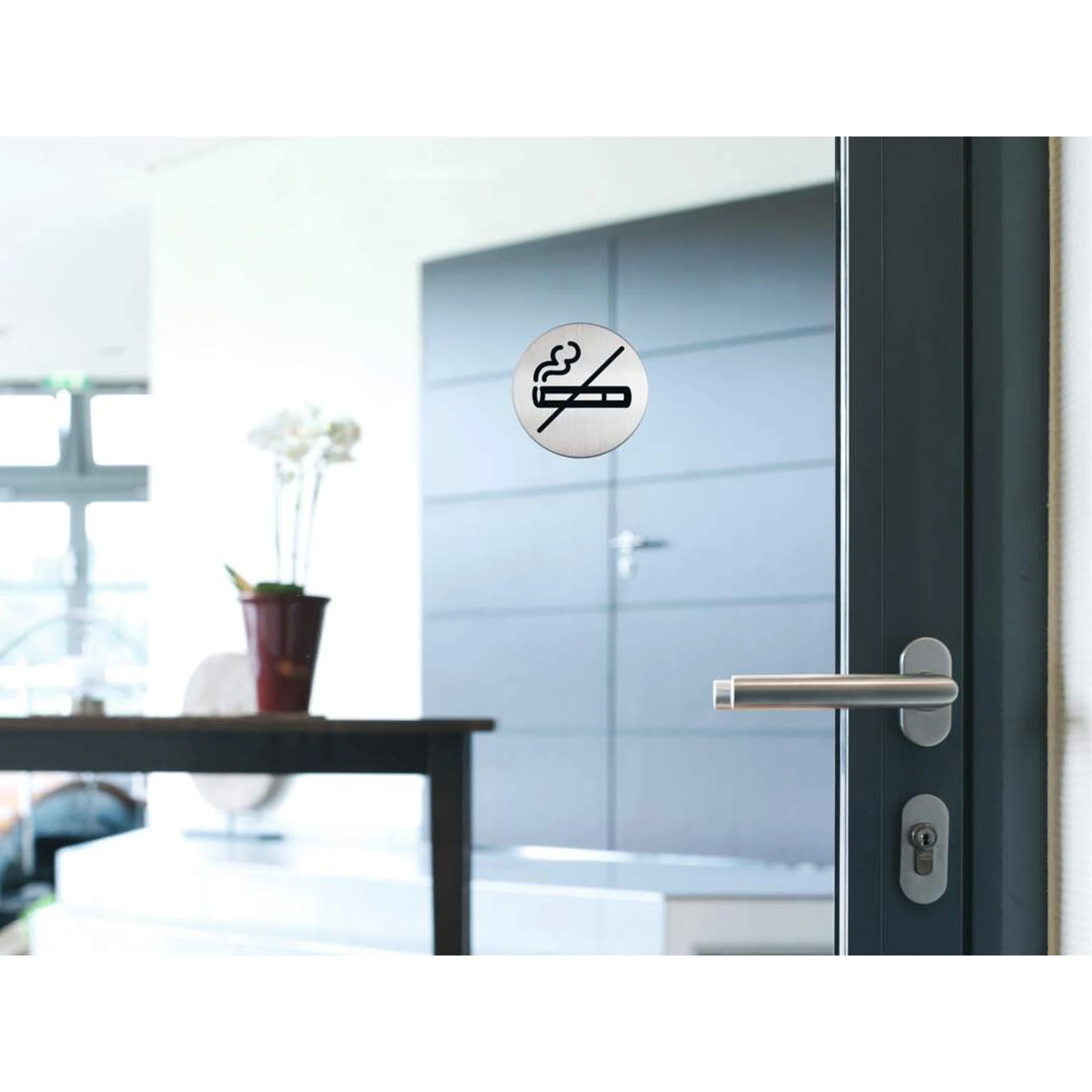 Самозалепваща се стоманена пиктограма с мотив „Пушенето забранено“.