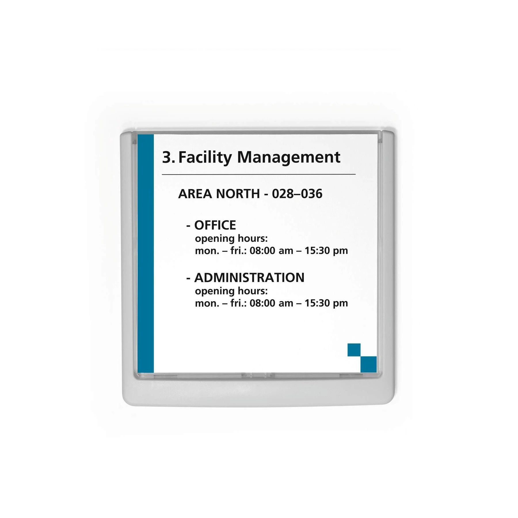 Табелка с цветна пластмасова рамка и картонен вложка.