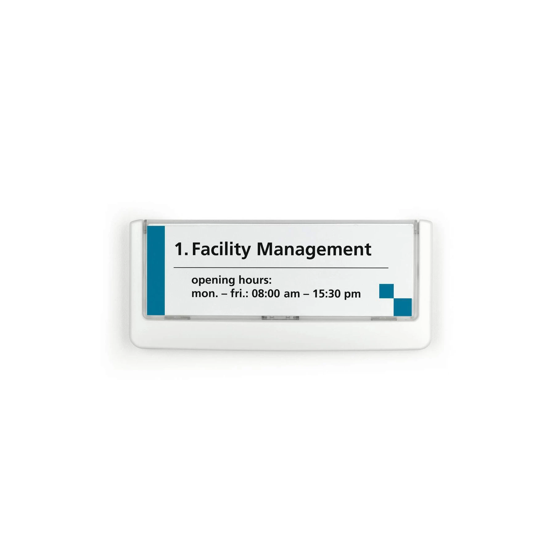 Табелка с цветна пластмасова рамка и картонен вложка.
