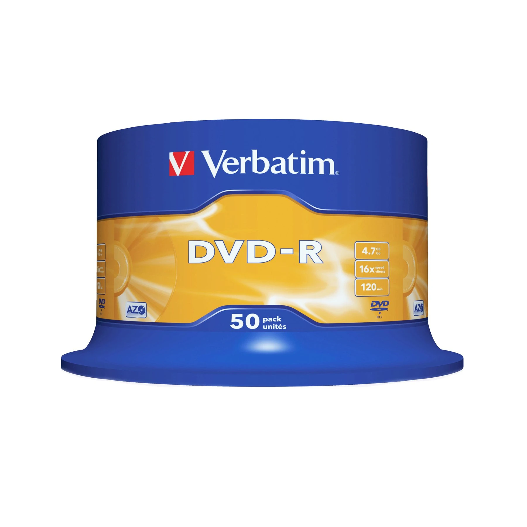DVD-R Verbatim, 4.7 GB, 16x, AZO покритие, 50 броя в шпиндел