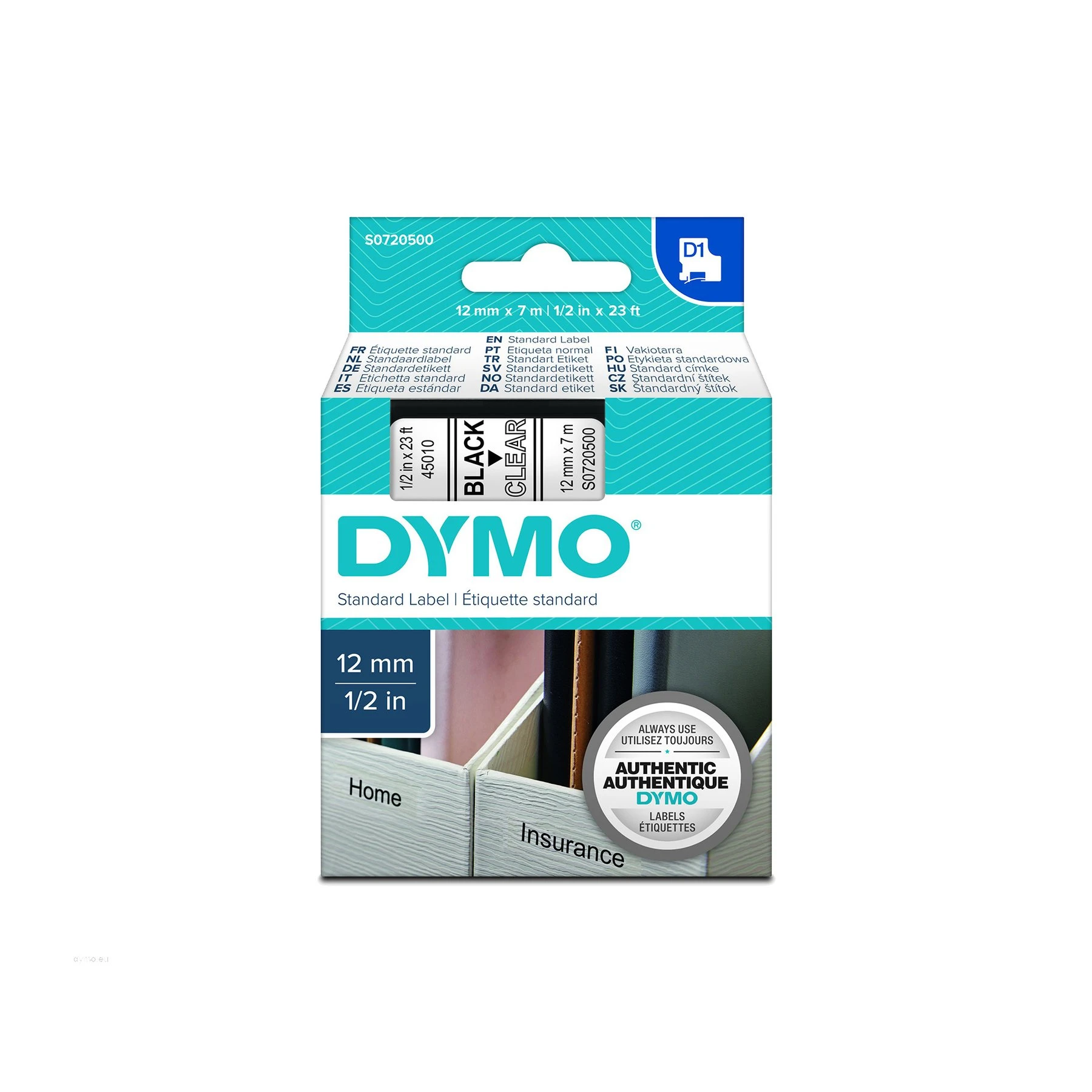 Dymo Лента 45010, 12 x 7 m, черни букви/прозрачен фон