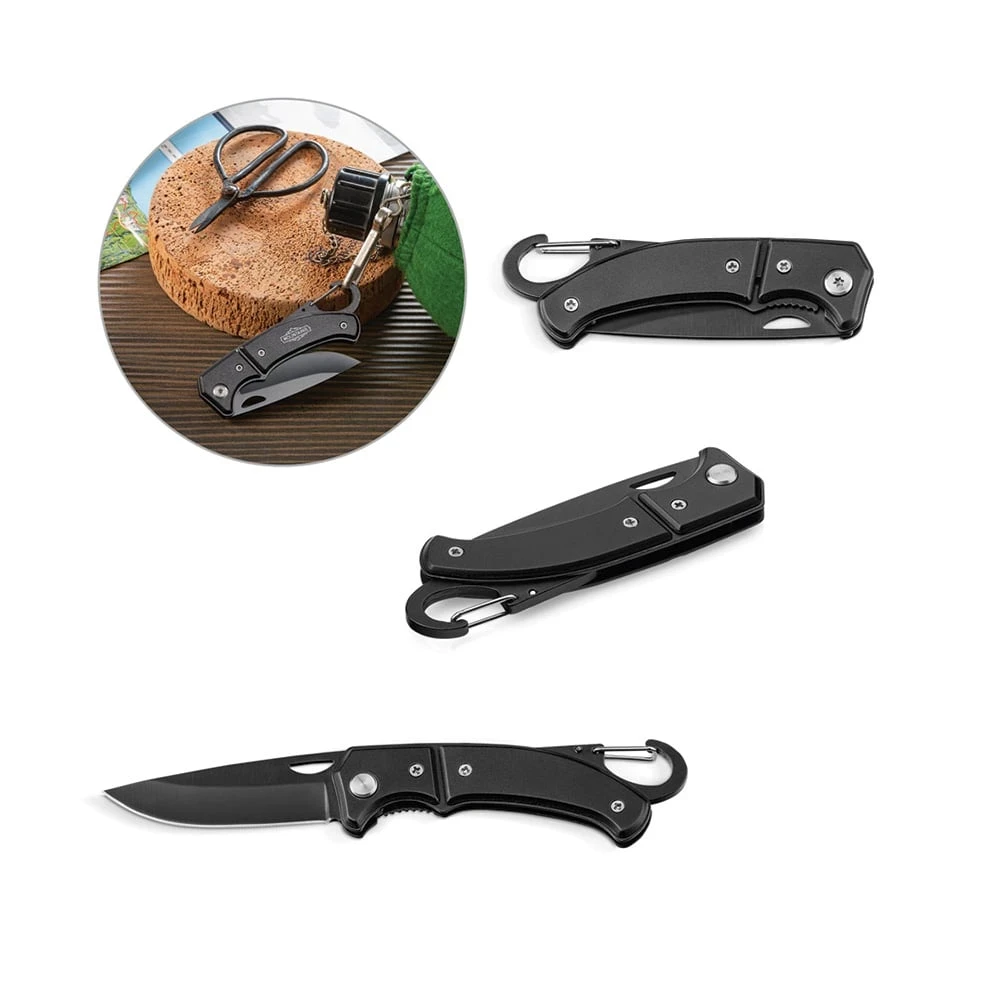 Джобнo ножче, изработено от неръждаема стомана и метал, с предпазител и карабинер.