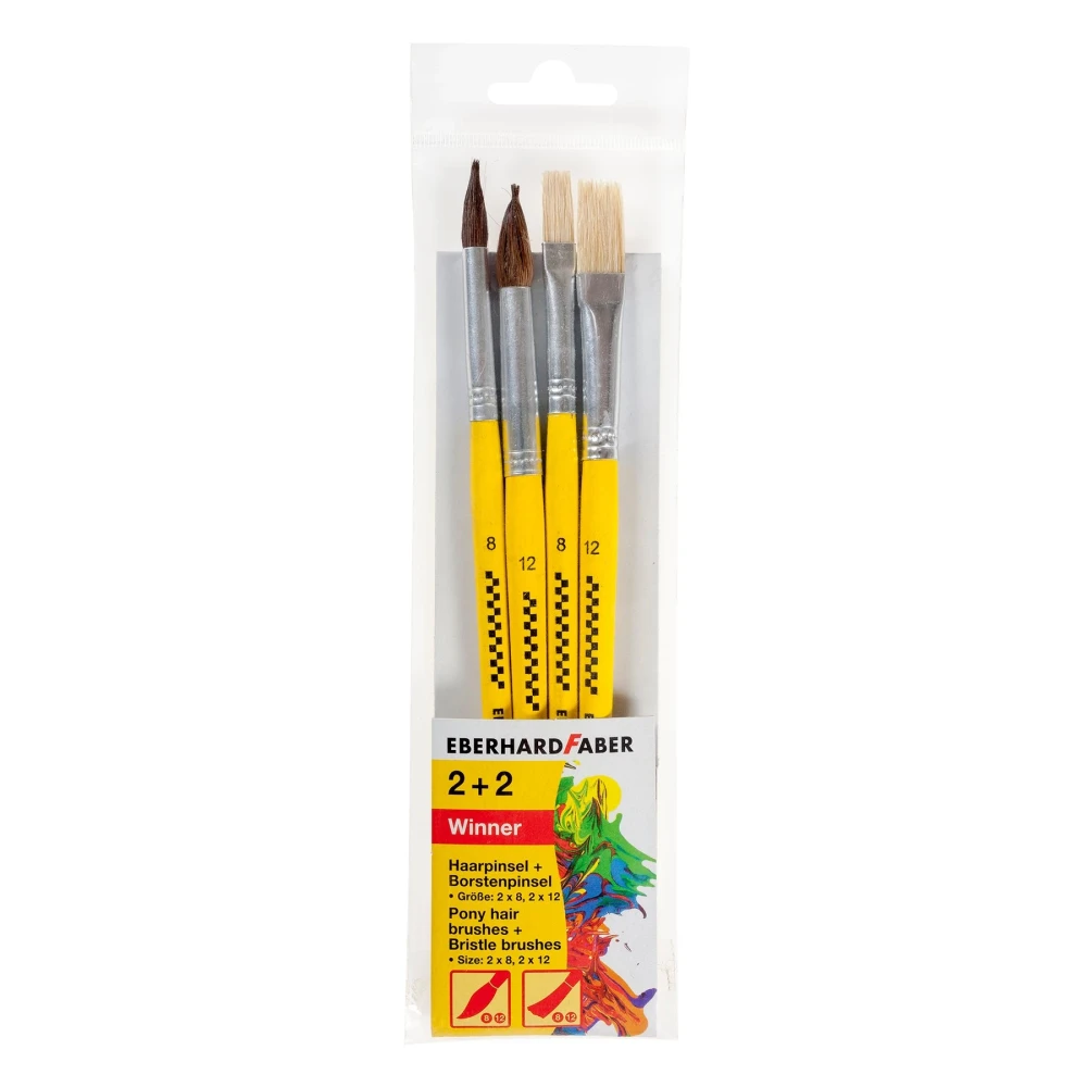 Eberhard Faber Четки за рисуване, плоски № 8 и 12 с четина, кръгли № 8 и 12 с естествен косъм, в блистер