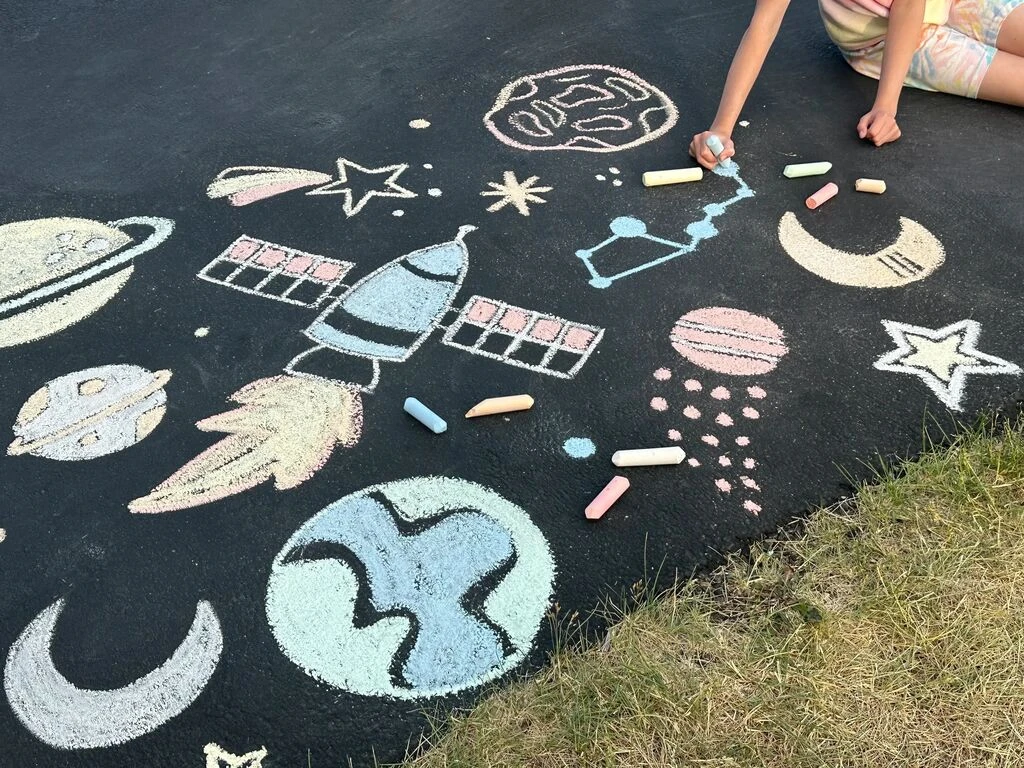 Тебеширите създават най-фантастичните творби на павирани или асфалтирани повърхности. Ако понякога нещата станат прекалено цветни, всичко се изчиства лесно с първия дъжд.